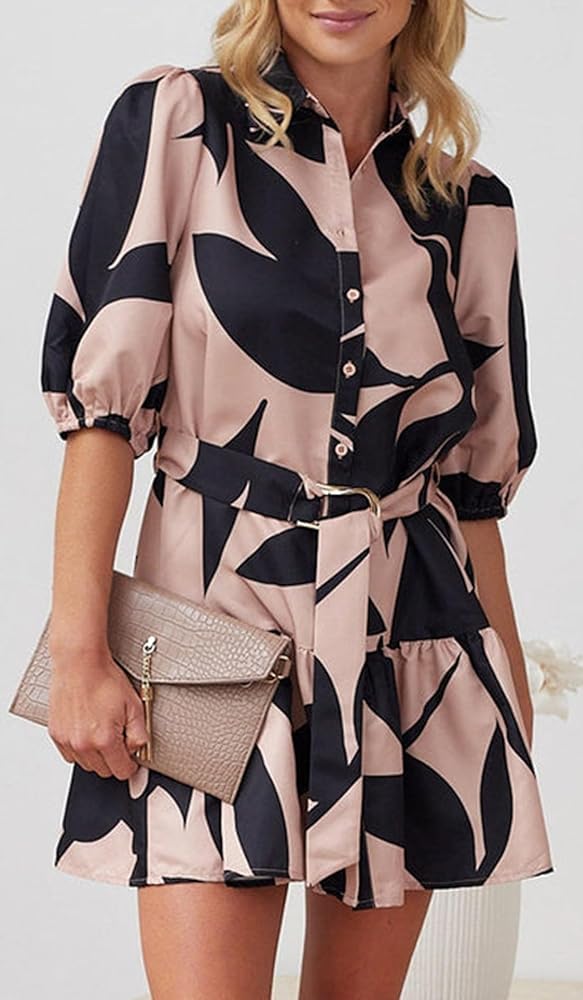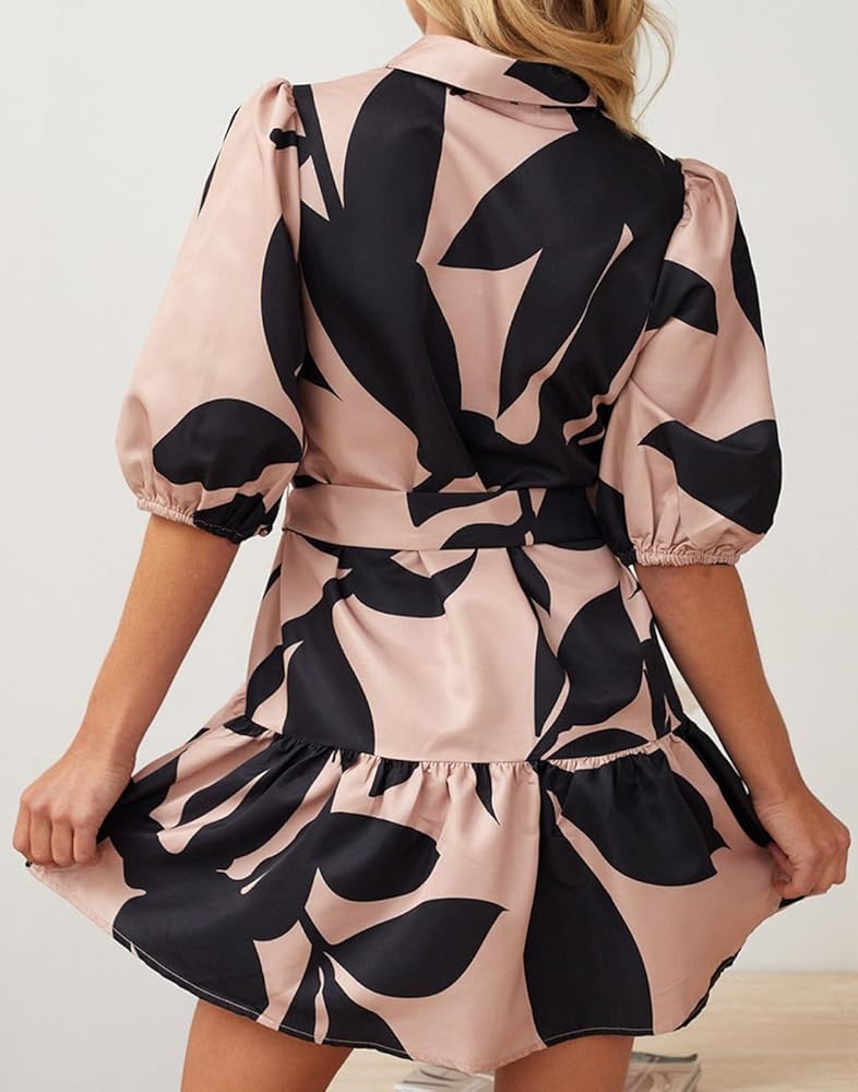 - المزايا: فستان بوهو بأكمام قصيرة وحزام وطية صدر واحدة وطباعة على شكل حرف A، يضيف تصميمًا أنيقًا، جديدًا وأنيقًا، يجعلك تبدو مختلفًا