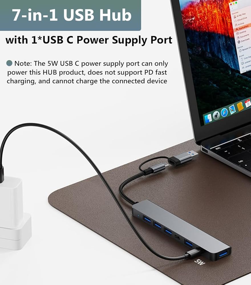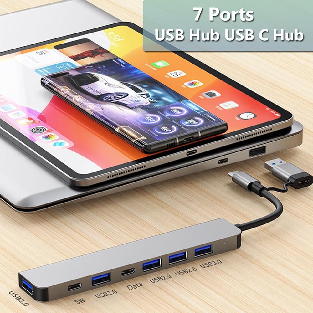 【Versatile 7-in-1 USB Hub】: Our USB Port Hub Extender and USB Splitter instantly expands your laptop, tablet, or smartphone's connectivity with 7 essential ports, including USB, and USB C port, allowing you to connect various devices and peripherals for increased efficiency and convenience.