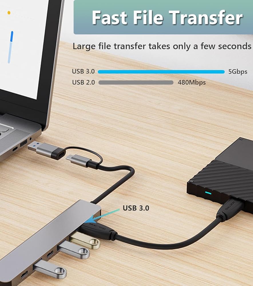 【High-Speed Data Transfer】: The usb c hub and usb hub equipped with USB Hub 3.0 port, this hub enables fast data transfer speeds of up to 5Gbps, allowing you to transfer large files, photos, and videos in seconds. Enjoy a seamless and efficient workflow with this powerful expansion dock.