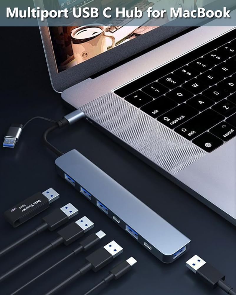 7 in 1 USB C Hub with USB 3.0, USB C, PD Fast Charging Port, USB 2.0 Ports for MacBook Pro Air and More Devices