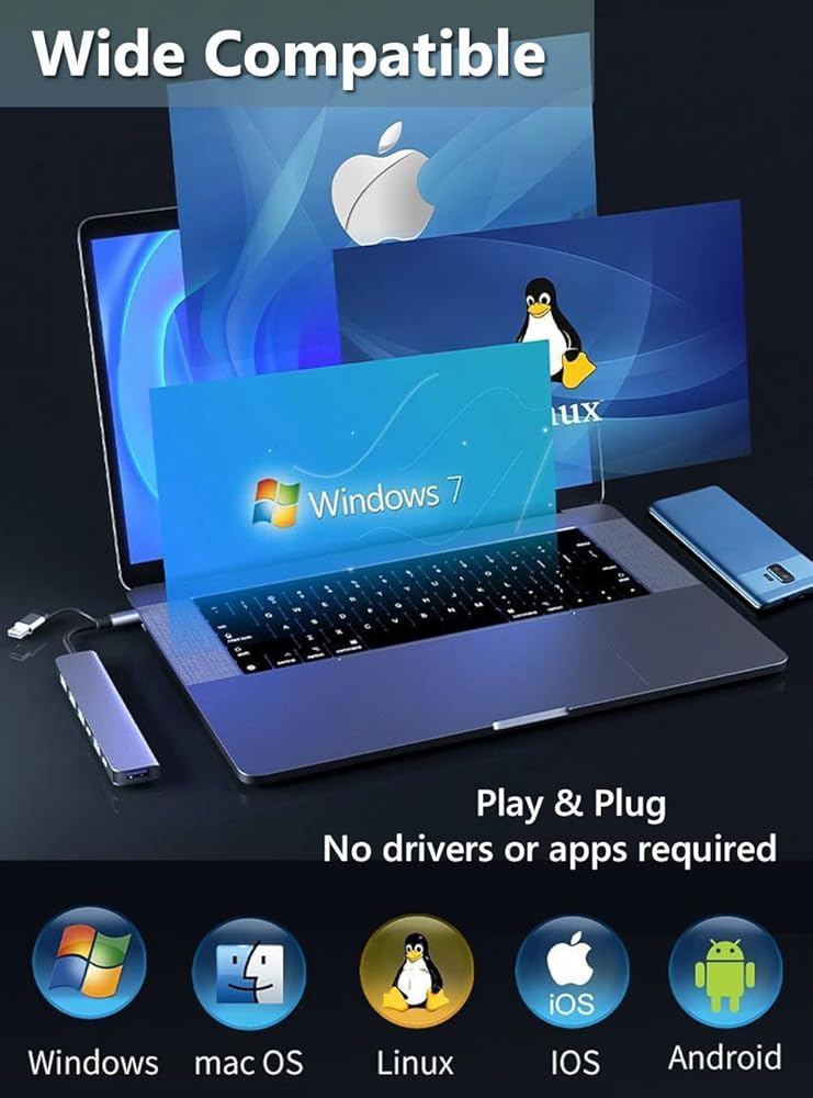 【Wide Compatibility】: The USB C hub Compatible with USB-C compatible with MacBook Pro/MacBook Air or devices with a Type C por, Windows 10, MacOS X, Android, Chrome OS Google, Linux with the latest updates.