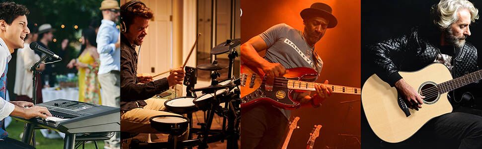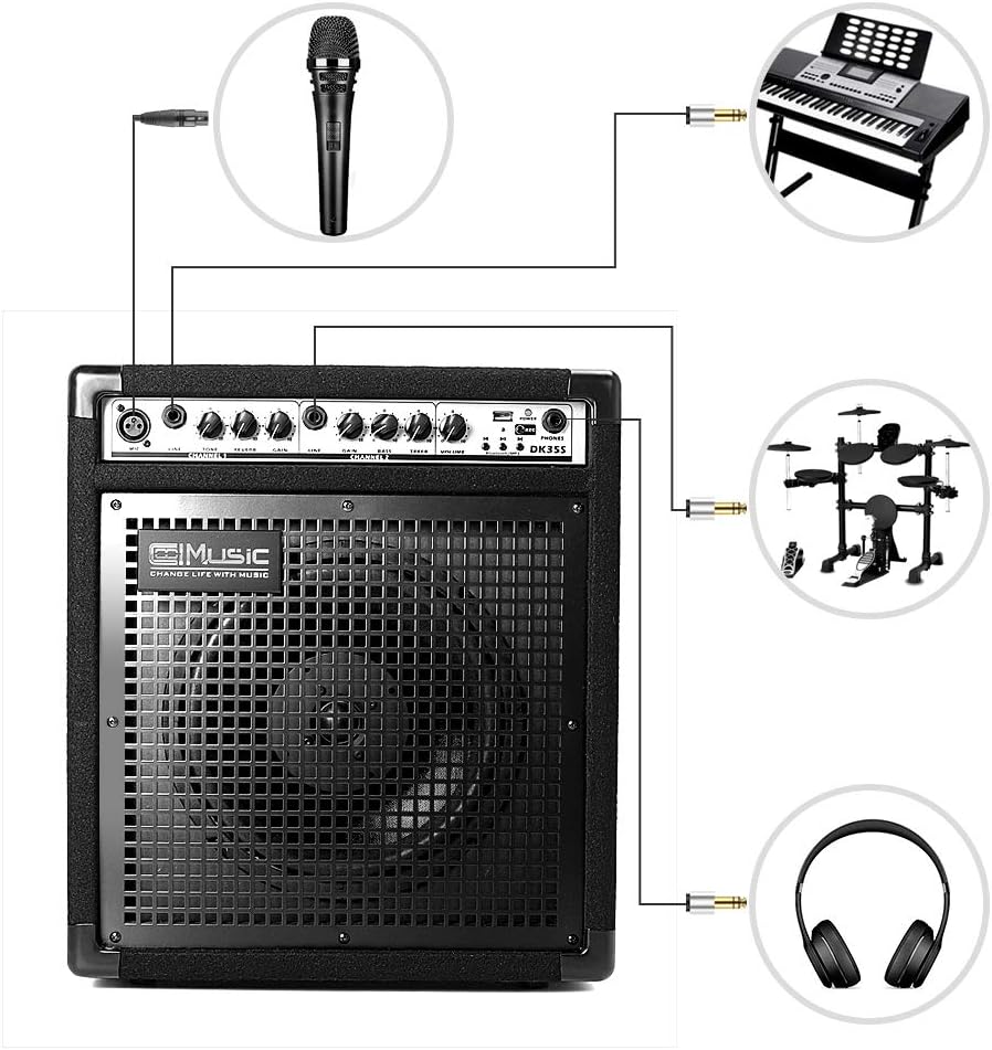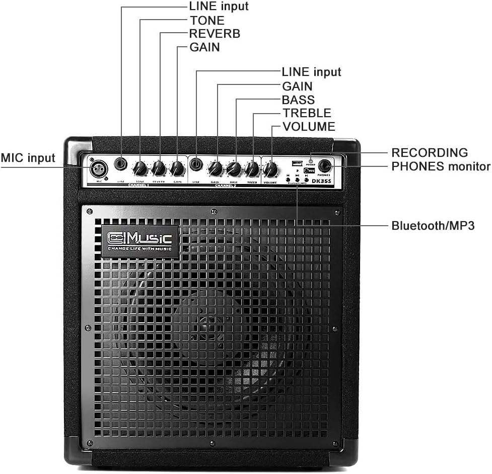 【مدخل ثنائي ومدخل ميكروفون كانون】مدخل جهاز 1/4 بوصة، معادل صوت ثلاثي النطاقات، تحكم في النغمة والكسبات. مدخل ميكروفون كانون مع تحكم في الصدأ.