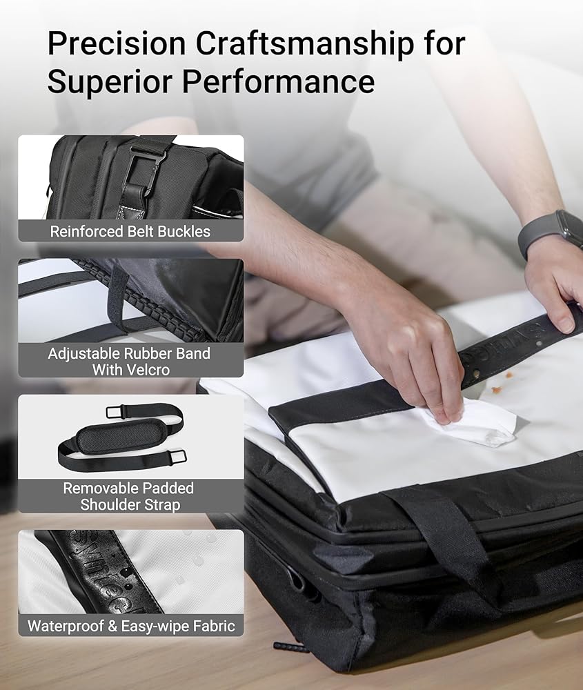 【السفر براحة】بقياس 16.14 × 11.42 × 7.87 بوصة، تلتزم حقيبة السفر المحمولة هذه بقيود الحجم المحمولة لمعظم شركات الطيران. مجهزة بمقبض حمل وحزام كتف وحزام للأمتعة، وتوفر ثلاثة خيارات للحمل لمزيد من التنوع. بالإضافة إلى ذلك، تعمل وسادة الظهر السميكة الموجودة على حزام الكتف القابل للتعديل على تخفيف الضغط، مما يعزز الراحة أثناء السفر.