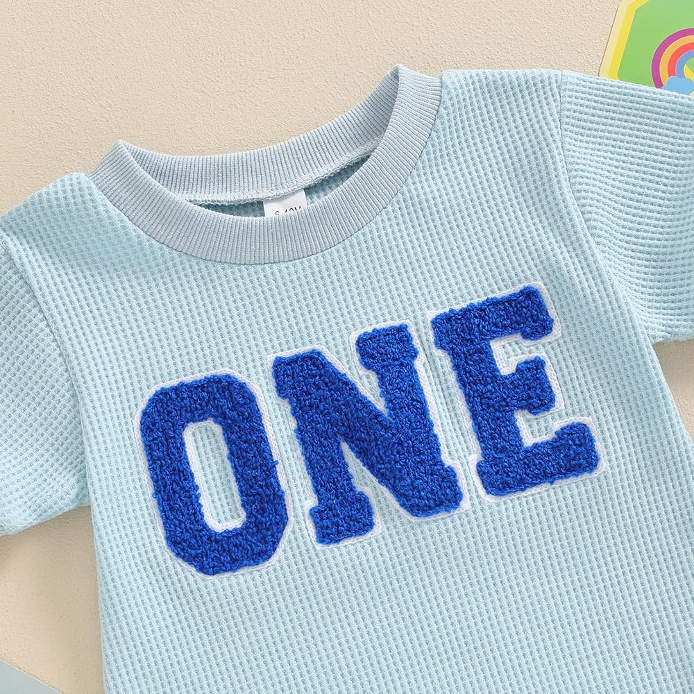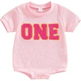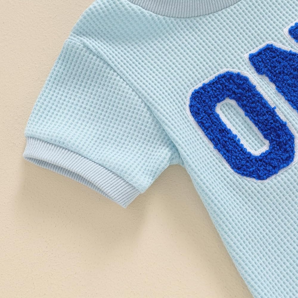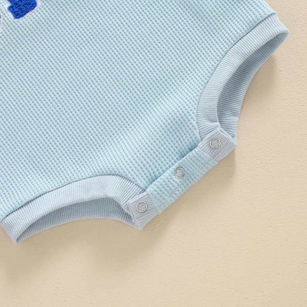 Toddler Baby Girl Boy Birthday Outfit "One" Embroidery Romper One Piece Bodysuit Waffle Summer Clothes