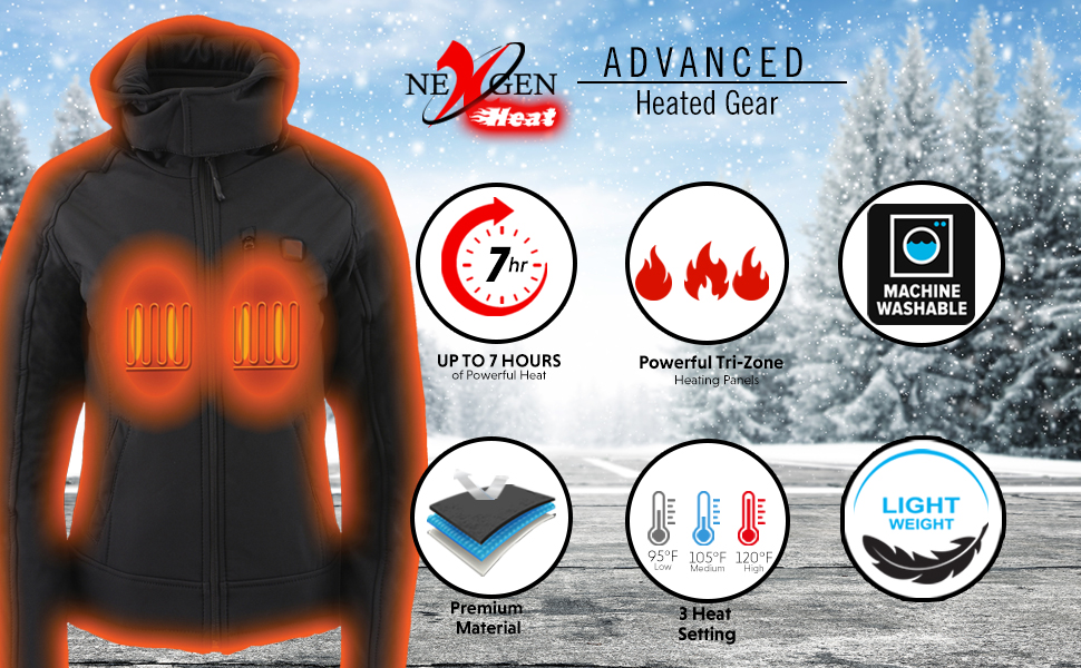 ✅ بطارية قابلة لإعادة الشحن: سترة Nexgen ساخنة ذات غطاء ناعم للنساء سترة كهربائية ساخنة مدعومة بحزمة بطارية قابلة لإعادة الشحن حتى تتمكن من توصيل حزمة البطارية القابلة لإعادة الشحن مباشرة في الجيب الداخلي. يحتوي أيضًا على منفذ USB، مثالي لشحن أي هواتف ذكية. يوجد لوحتان أماميتان مدفأتان للصدر ولوحة خلفية كبيرة مدفأة.