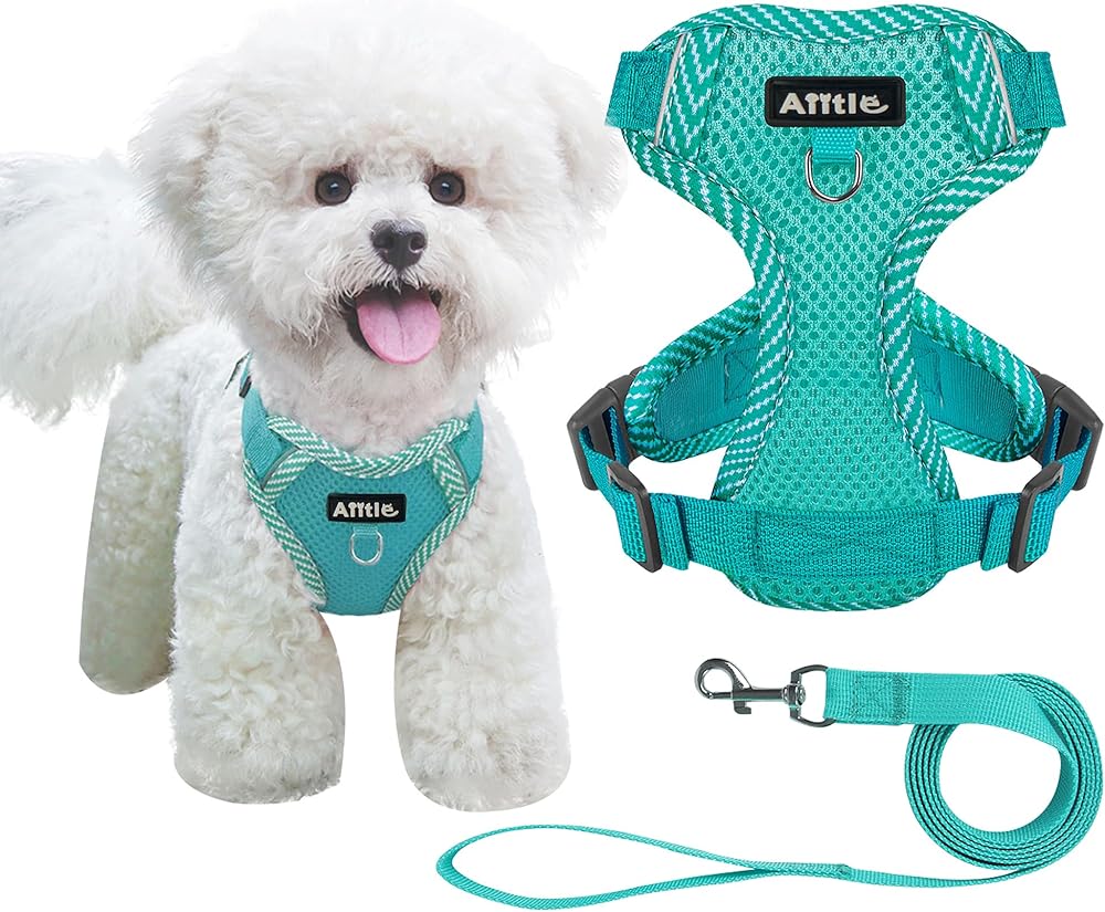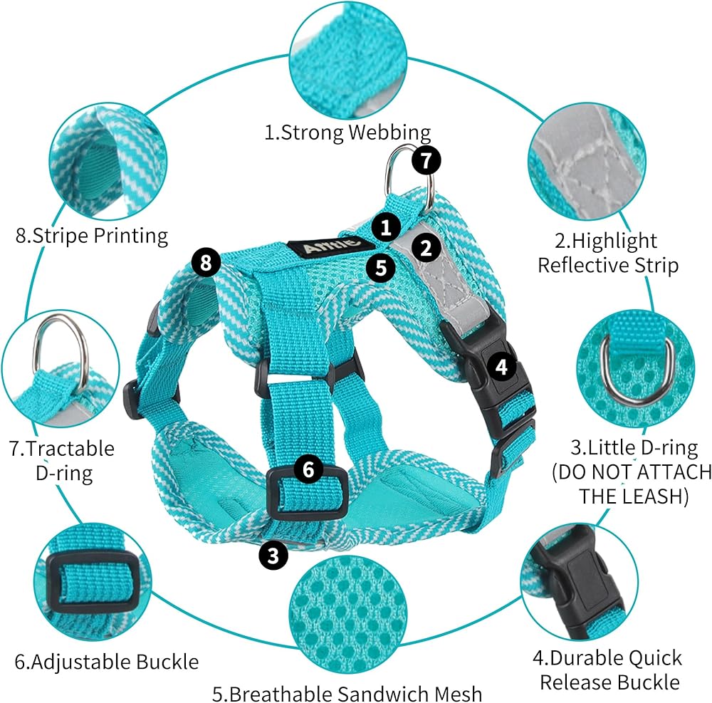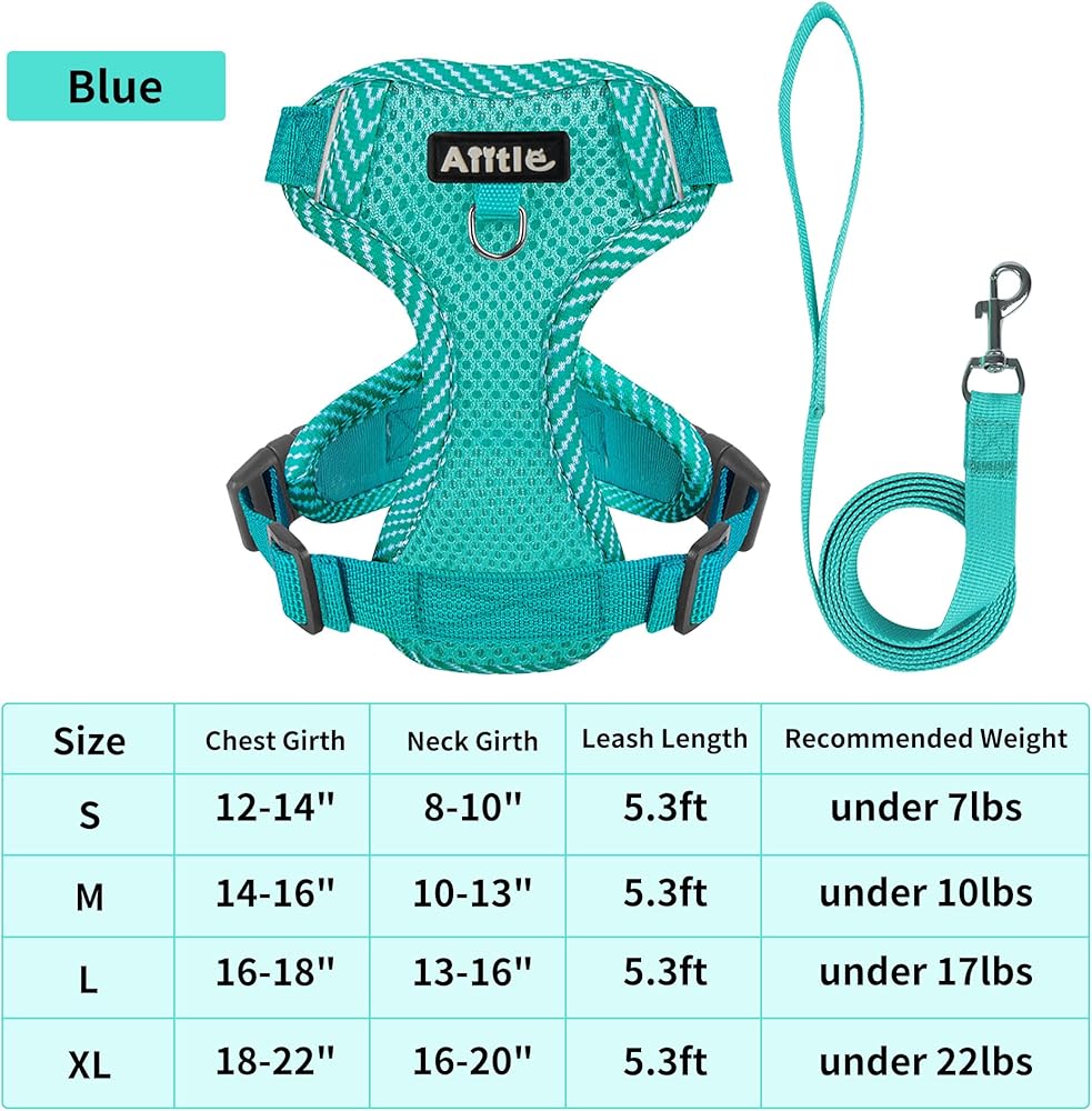 مجموعة حزام ومقود الكلاب المقاومة للسحب من AIITLE - حزام للكلاب قابل للتعديل مع سترة مبطنة لجميع الأحوال الجوية - حزام عاكس للضوء قابل للتعديل للحيوانات الأليفة - سهل الارتداء على الكلاب الصغيرة جدًا والقطط المنزلية - أزرق S