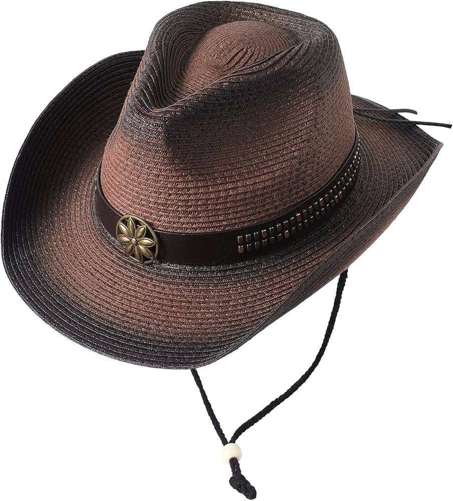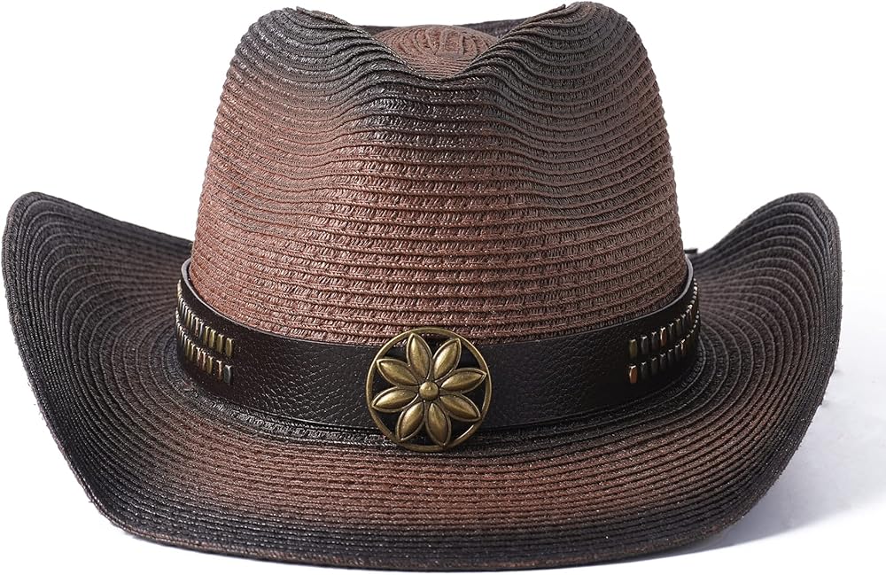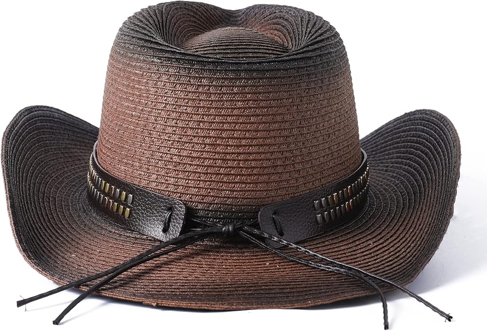 Lanzom إمرأة رجل القش الشاطئ قبعة الشمس الكلاسيكية الشكل قبعة الشمس Packable قبعة الصيف قبعة رعاة البقر UPF 50+