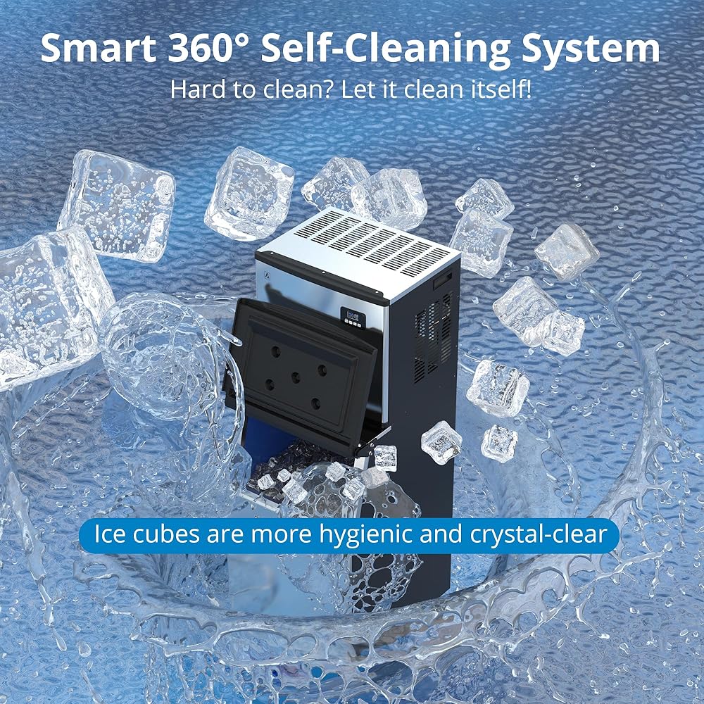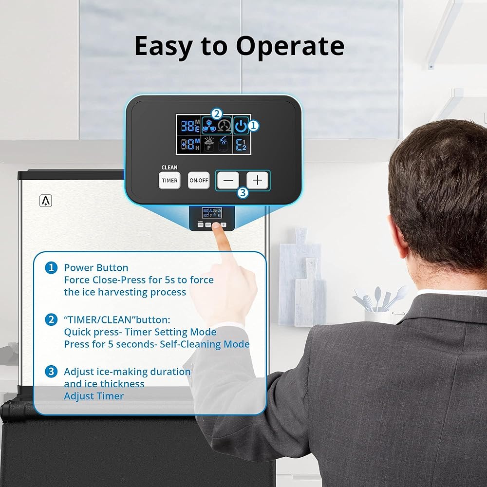 • الاستخدام التجاري والمنزلي: على عكس الوحدات المدمجة أو التي توضع على سطح العمل، يتيح لك التصميم القائم بذاته تركيب صانع الثلج في أي مكان تريده، فقط تأكد من أن لديك مصدر مياه مباشر ومساحة كافية للتهوية. يمكن استخدام صانعة الثلج هذه في المناسبات التجارية والمنزلية.