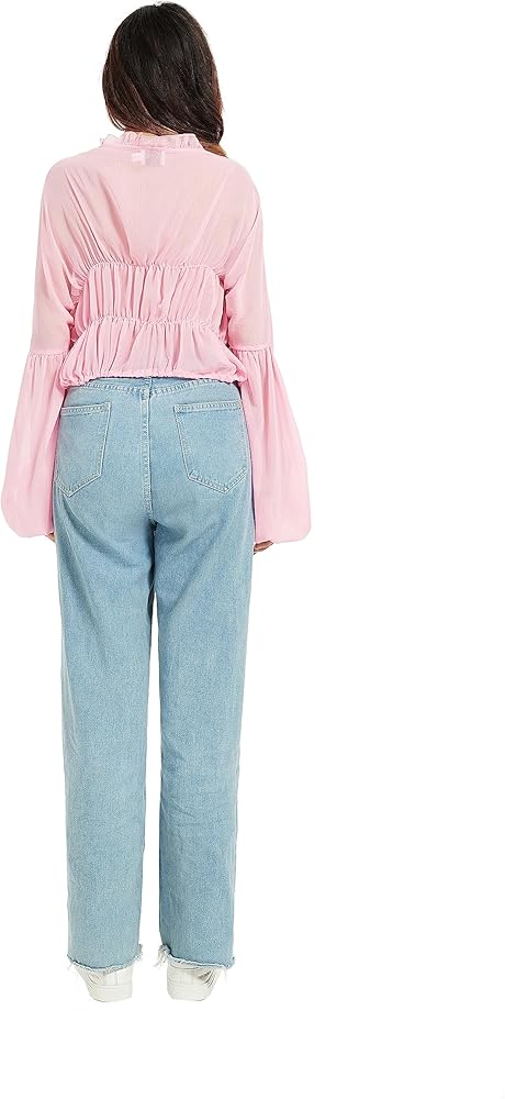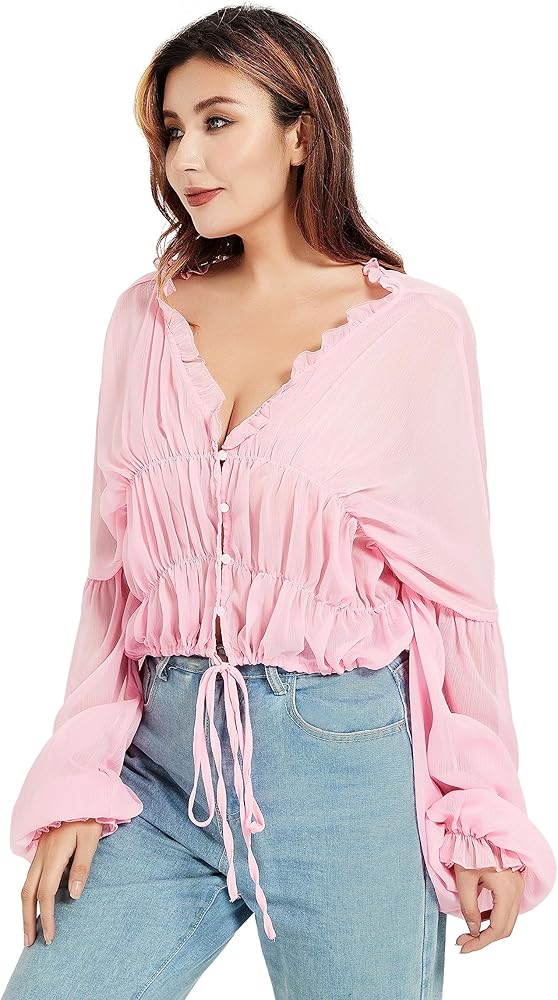 قميص بلوزات صيفية مثيرة للسيدات مصنوع من البوليستر بنسبة 100%. جودة عالية، قابلة للتنفس وخفيفة الوزن. قماش الشيفون منخفض التمدد، يرجى التحقق من جدول المقاسات الخاص بنا قبل الطلب.