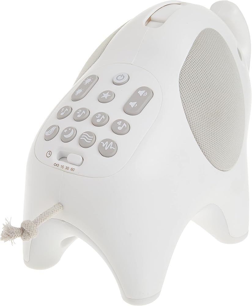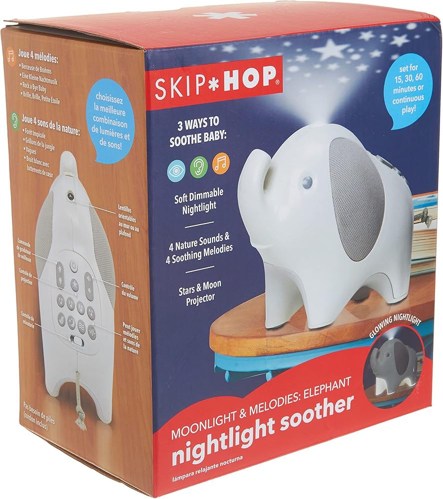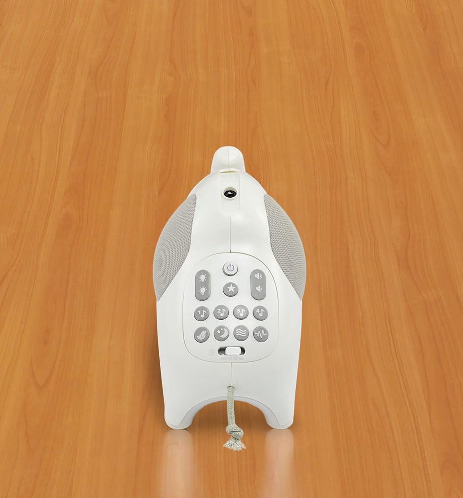 Features: Serene stars & moon projection, Glowing nightlight belly with dimmer control, Four melodies & nature sounds
