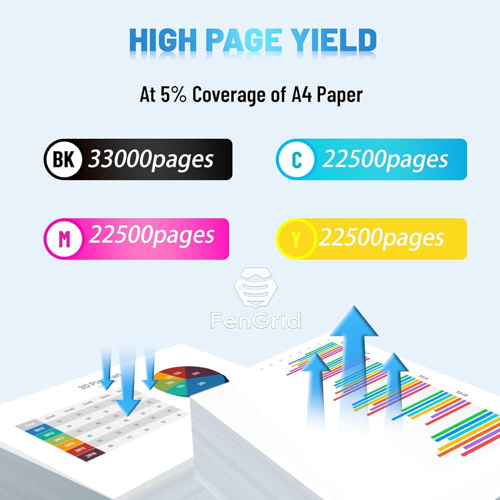 Page yield: Up to 33,000 pages per 841849 black cartridge and 22,500 pages per 841851 841852 841850 color cartridge(at 5% coverage, Letter, A4). Get up to more pages with FenGrid MP C6003 toner unit compared to standard one.