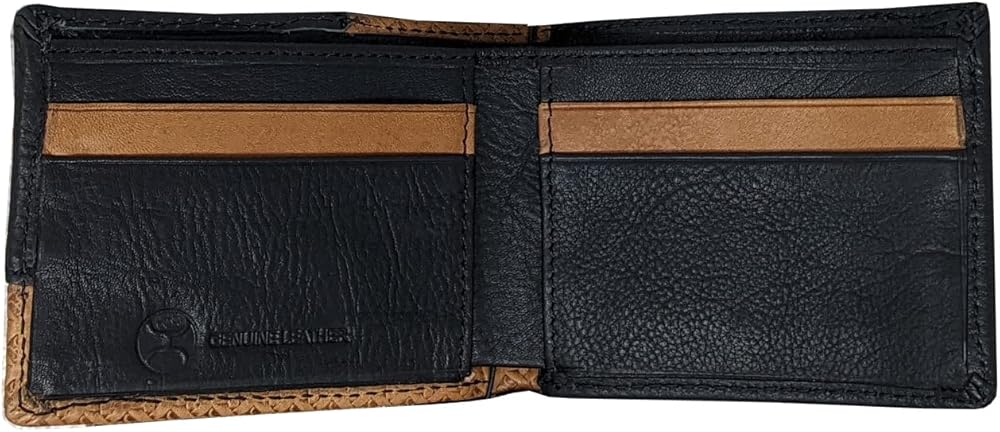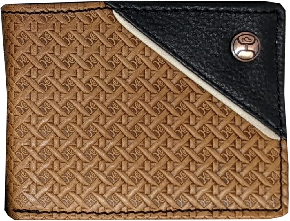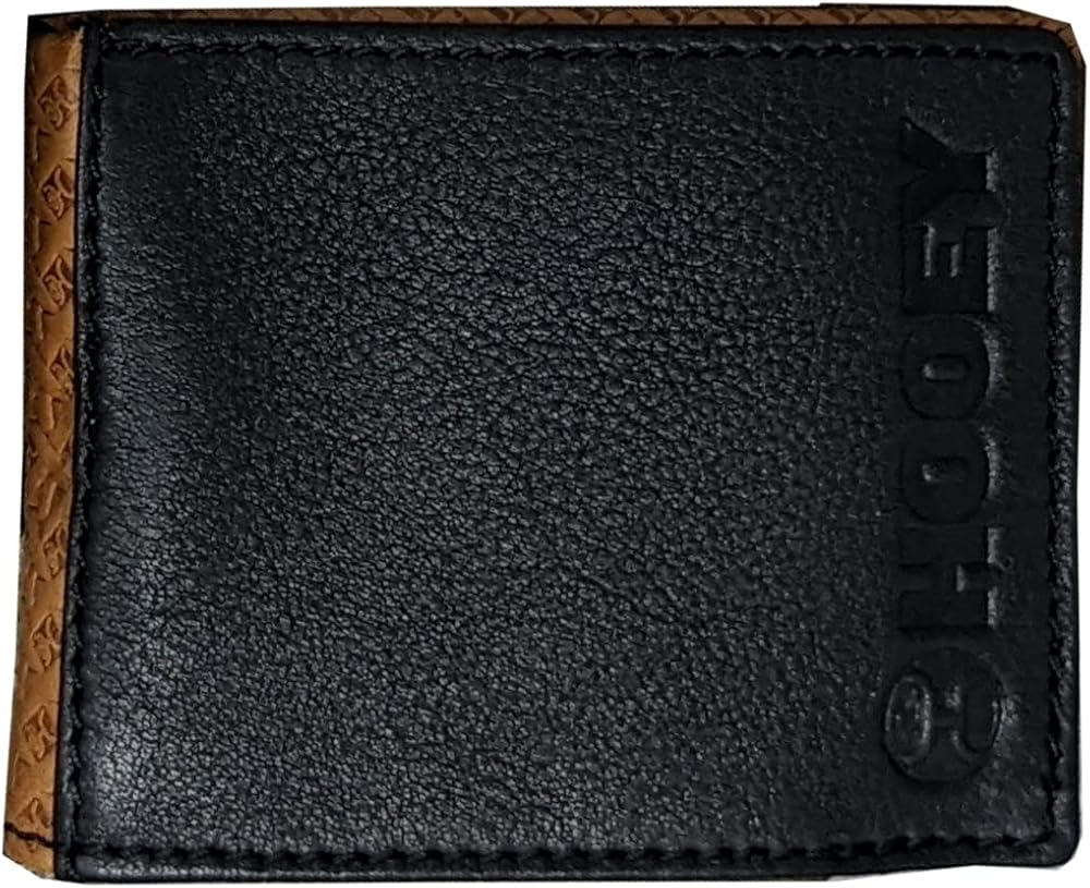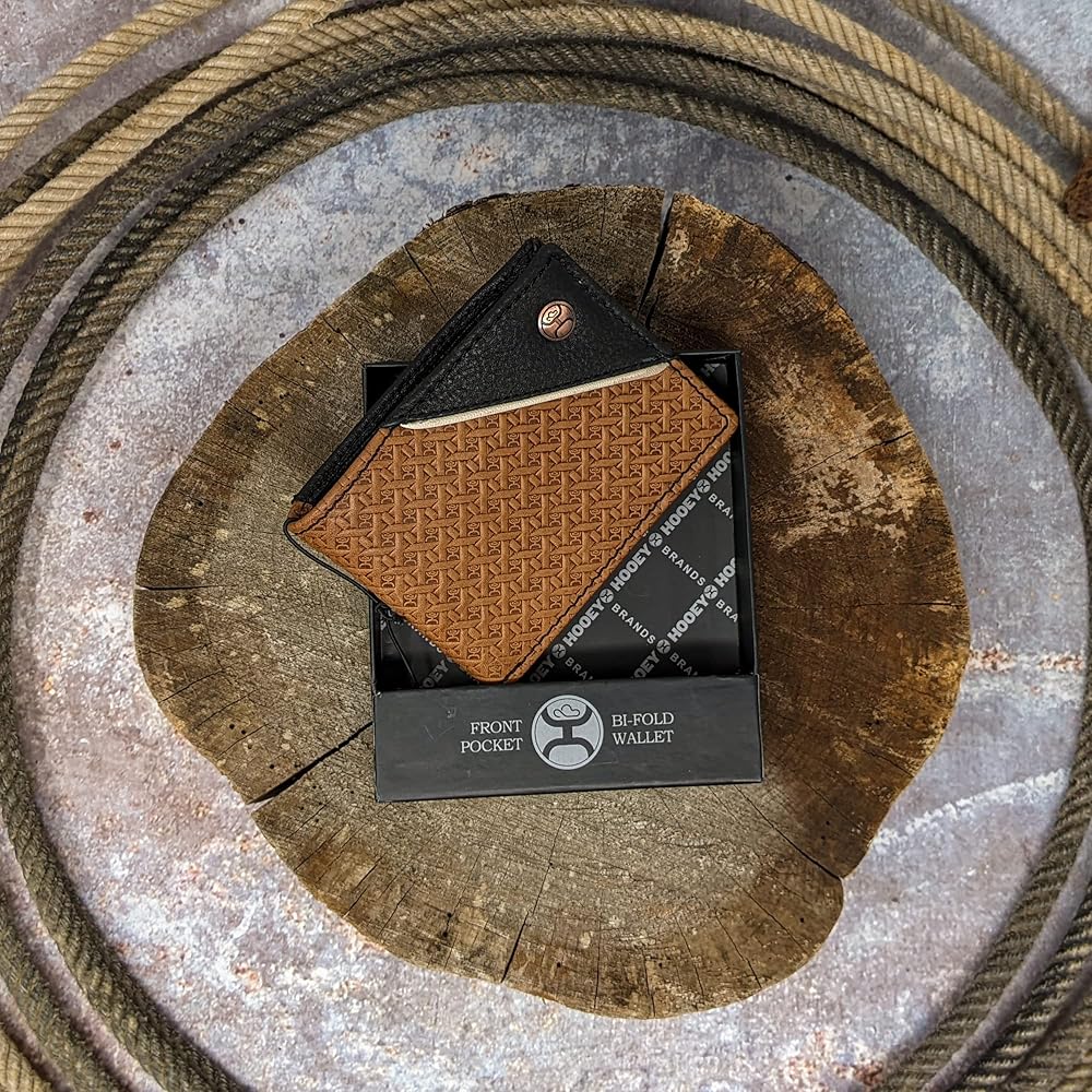 محفظة رجالية من الجلد ثنائية الطي من HOOEY (طبقة سوداء من نسيج السلة - بني)