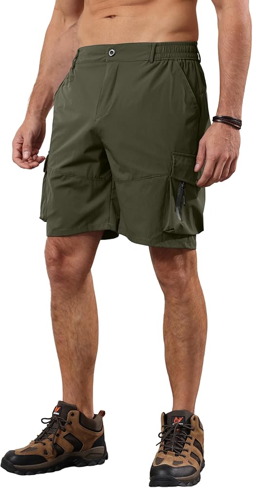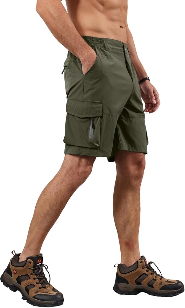 خفيف الوزن وسريع الجفاف: شورت المشي لمسافات طويلة الرجالي مصنوع من النايلون خفيف الوزن والألياف لدنة، نسيج ماص للرطوبة يساعد على سحب العرق بعيدًا عن الجلد، مع وقت سريع الجفاف، ستكون جاهزًا لمغامرتك القادمة في وقت قصير.