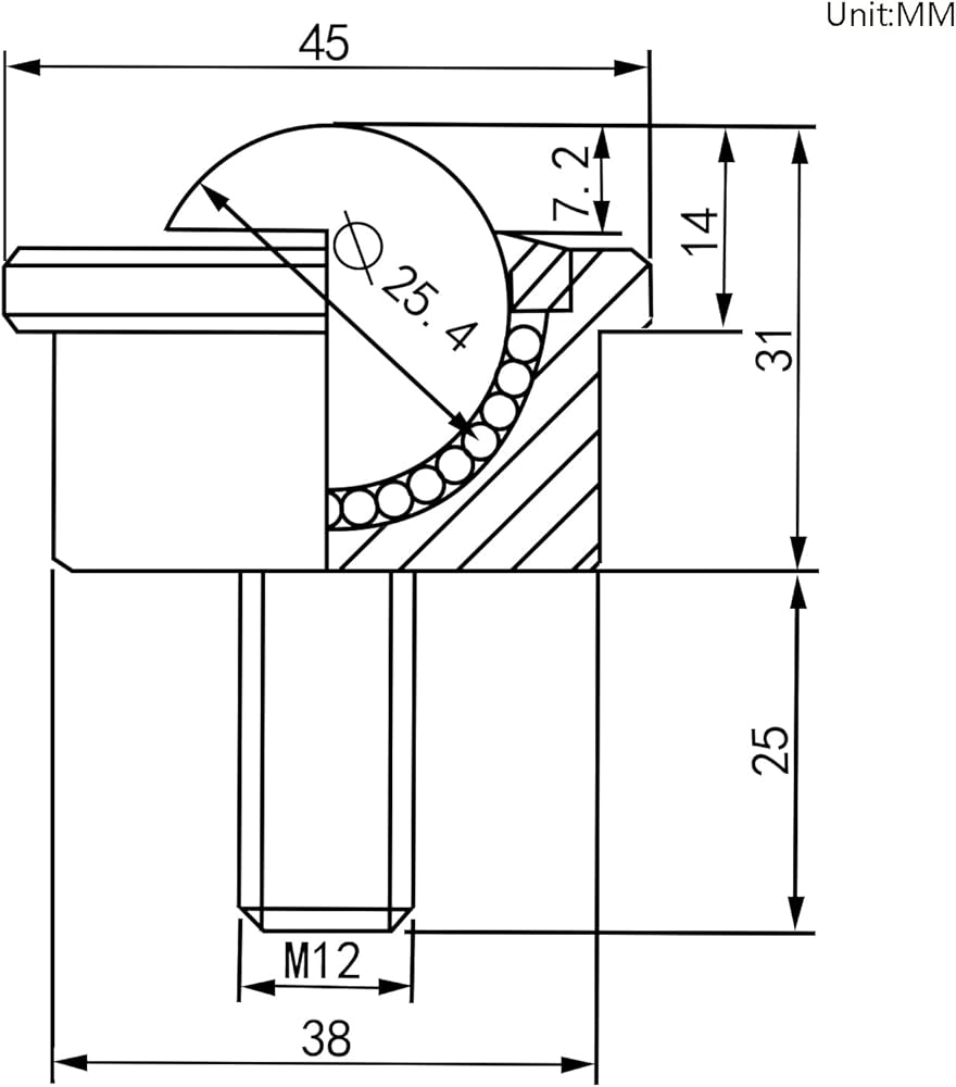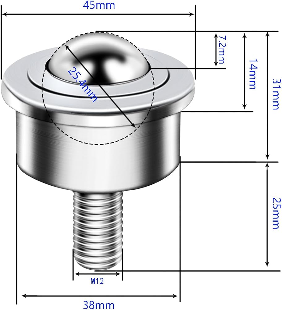 - Product Data:Heavy Duty Roller Ball diameter 25.4MM(1 inch), M12 Thread Stem