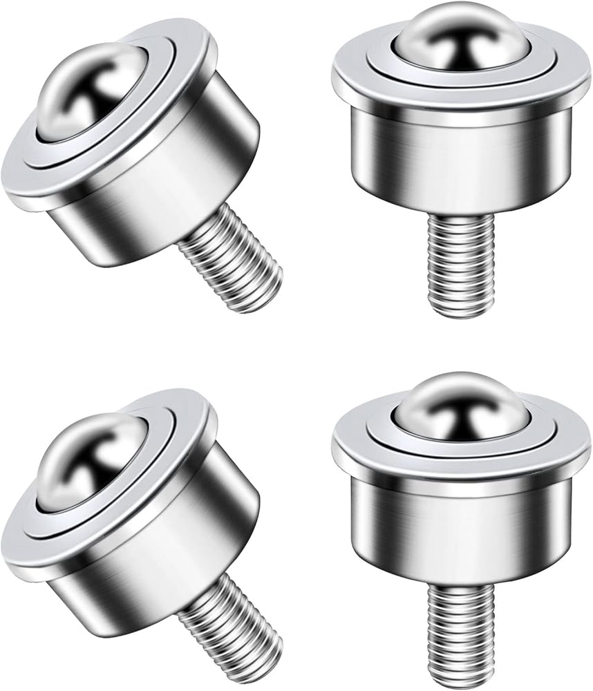 محمل نقل دوار للكرة، 4 قطع M12 جذع خيط 1 بوصة، بكرة نقل الكرة شديدة التحمل لنقل الحركة، مثبتة على مسمار، جذع خيط، محمل فولاذي وفولاذ كربوني، سعة تحميل إجمالية 1600 رطل.