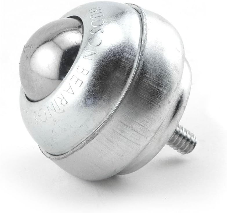 Hudson Bearings deep cup stud mount ball transfer with 1/4-inches thread. 1-inches main ball rotates on eighty 1/8-inches support balls. Ball support cup is hardened and plated. Protective cover assures low torque and longevity. Also available with a base to ball height of 1-17/32-inches in 1/4-inches stem only. 75 pounds load capacity.