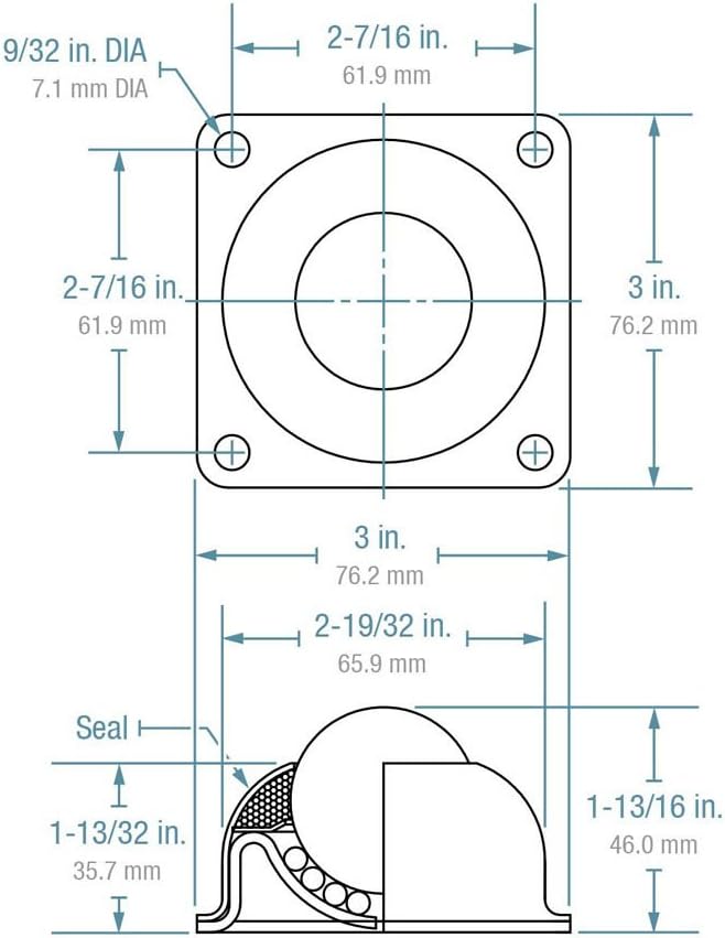 Hudson Bearings flange mounted four hole carbon steel ball transfer. Ball transfers solve a variety of material handling and motion control challenges, whether used in the traditional ball up position or as a caster in the ball down orientation. Ball transfers offer advantages to traditional casters, such as lower profiles and omnidirectional movement, often at a lower cost. Common applications: air cargo, shears, robotics, military logistics, store fixtures, die handling, laser and plasma cutters, glass and metal manufacturing, medical devices, caster substitution. Made of carbon steel housing material. Ball support cup is hardened and plated. Protective cover assures low torque and longevity. Units available in plated carbon steel to provide corrosion resistance. 1-1/2-inches main ball rotates on ninety 3/16-inches support ball.