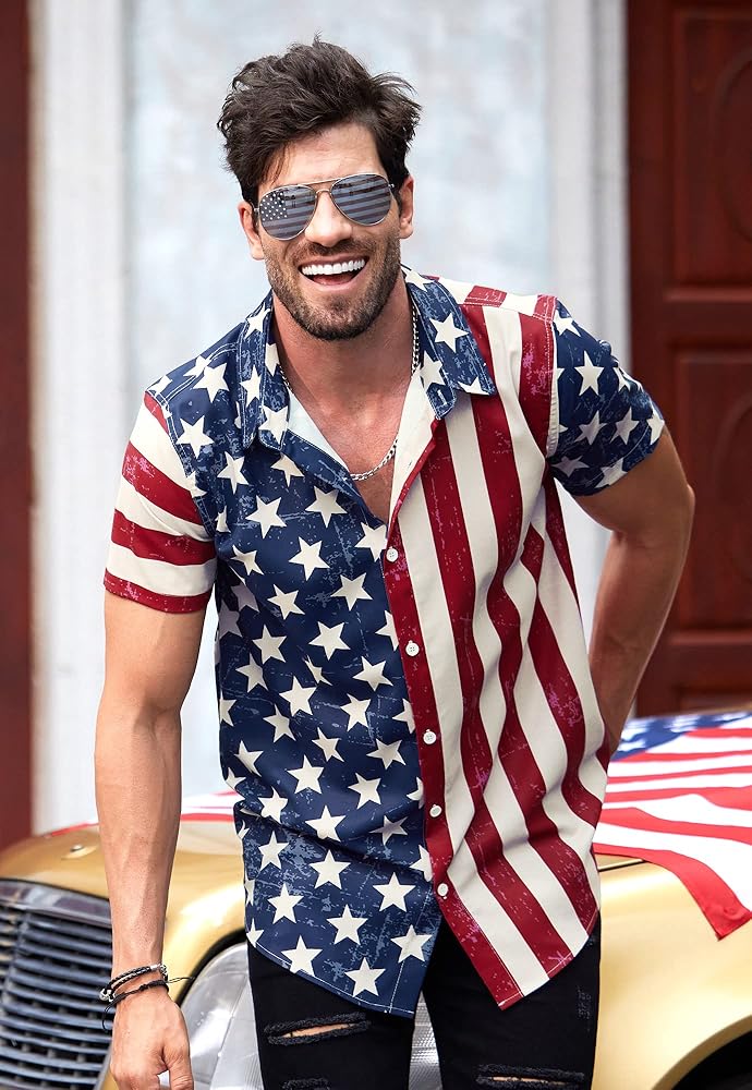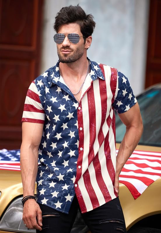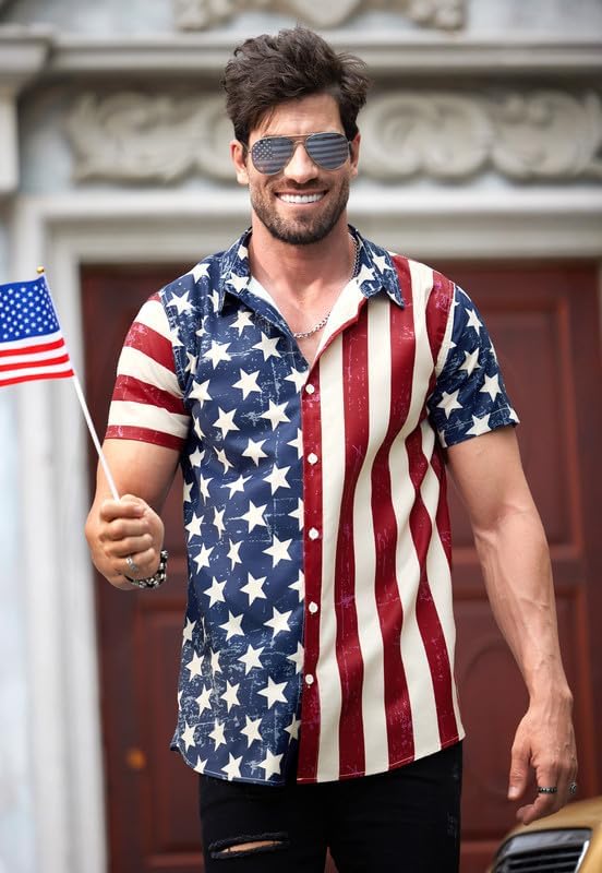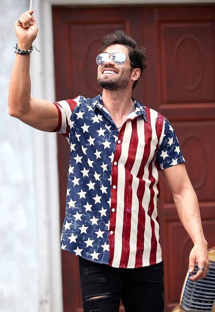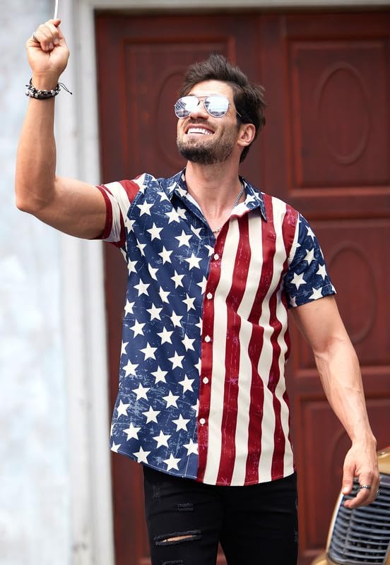 قميص الرابع من يوليو - يتميز هذا القميص بأزرار العلم الأمريكي بتصميم أنيق ومشرق وجريء. ويتميز بتقنية الخياطة ذات الغرز المزدوجة رفيعة المستوى. من المؤكد أن قمصان Arvilhill الرجالية الوطنية ستساعدك على التميز بين الناس!