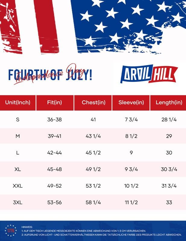 خدمة ما بعد البيع - تلتزم Arvilhill بضمان الجودة ورضا العملاء من خلال خدمة ما بعد البيع التي يمكن الاعتماد عليها. يرجى الرجوع إلى جدول المقاسات قبل الطلب. لمزيد من ملابس عيد الاستقلال، ابحث عن "Arvilhill 4th Of July".