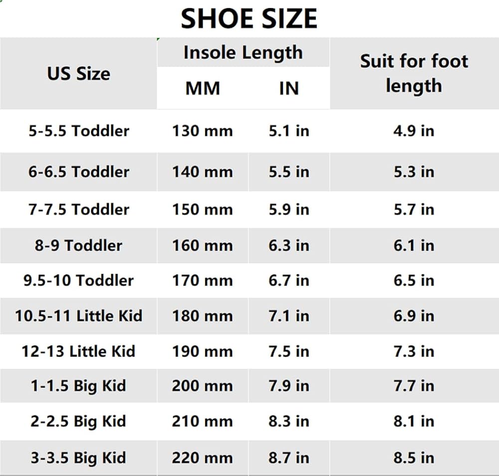 Size: 5-5.5 Toddler Insole Length: 4.92in Suit for Foot Length: 4.72in