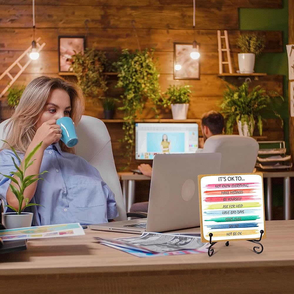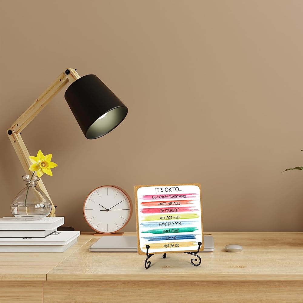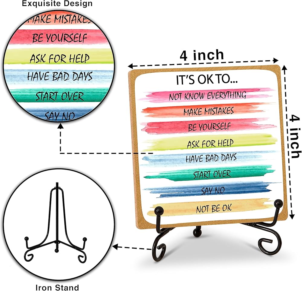 【Stylish Home Office Desk Decor】This desk decoration sign is 3.94 x 3.94 x 0.2 inches in size. It's designed to make any space look better. You can place it as a beautiful centerpiece on your home table in the bedroom, living room, study, or office. It can also add charm to your garden, yard, balcony, or wooden house, creating a wonderful atmosphere effortlessly. 【Heartwarming Gifts】The package includes 1 wooden sign and a stand to hold it. This is a thoughtful gift that shows your love and care for your family, friends, and colleagues. It serves as a constant reminder for them to always strive for the best and feel cherished, making their day even more delightful! 【Wide Applications】With a variety of themes to choose from, these gifts are perfect for family members, mothers, sisters, best friends, brothers-in-law, daughters-in-law, daughters, grandmothers, as well as colleagues, bosses, employees, neighbors, girlfriends, boyfriends, close friends, teachers, nurses, doctors, and more. 【High-quality Materials】Made from top-quality wood, this desk decor is not only reliable and sturdy but also has a smooth surface and exquisite craftsmanship. The beautiful patterns are clear and won't fade easily. It comes with a durable iron stand that ensures stability and gives you peace of mind, knowing it will last a long time.