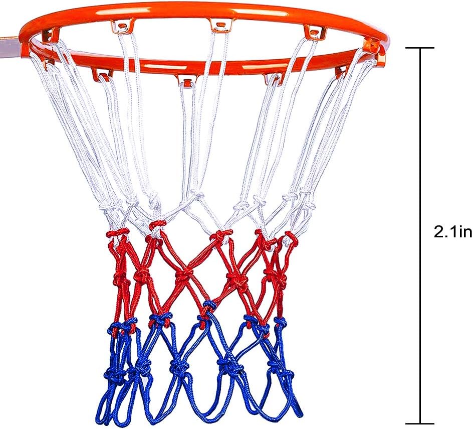 • 21'' length basketball net with 2'' mesh size body have 12 loops will fit all professional official rims on backboards