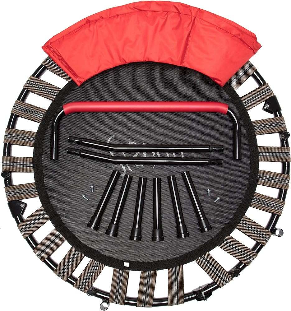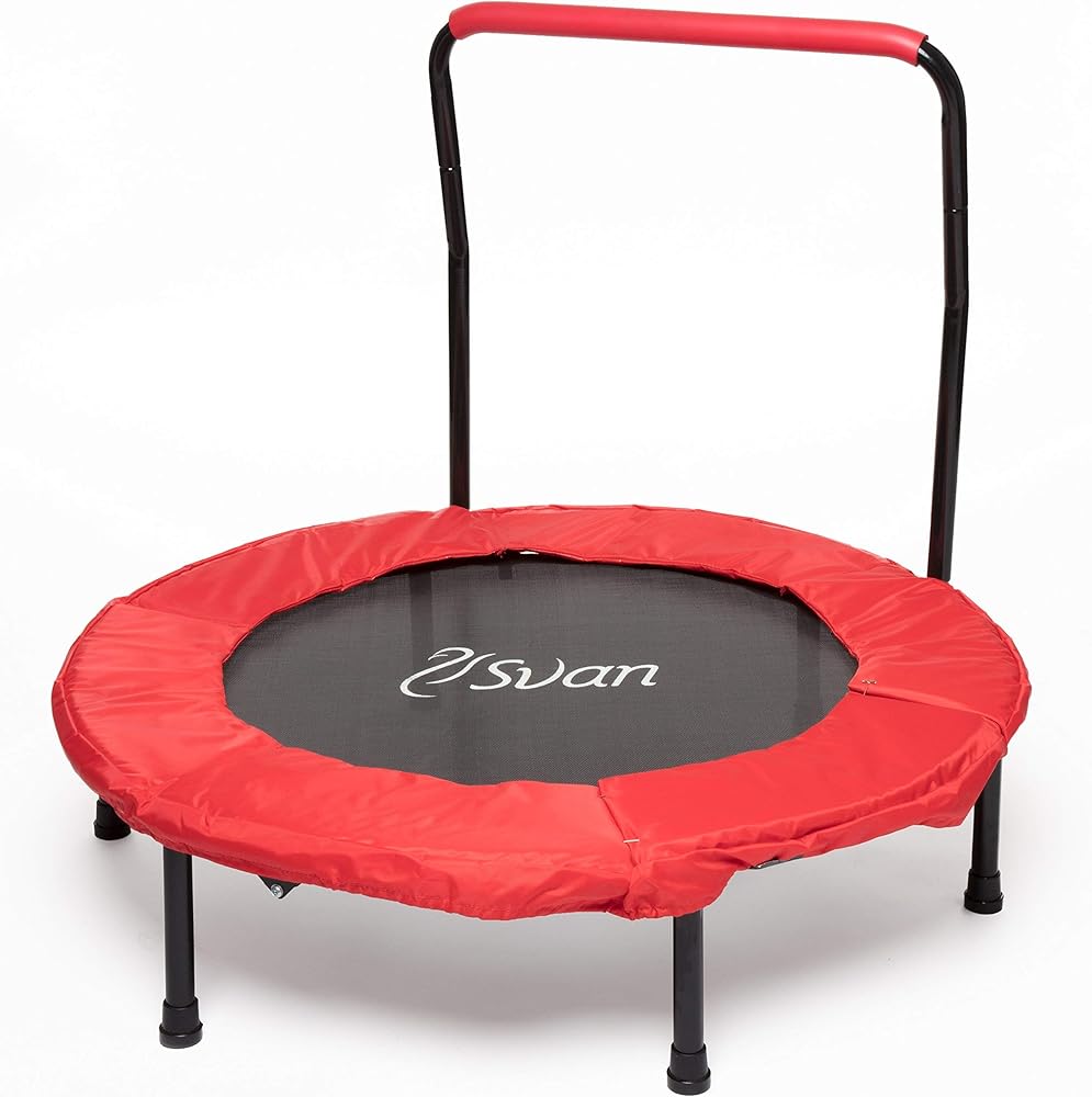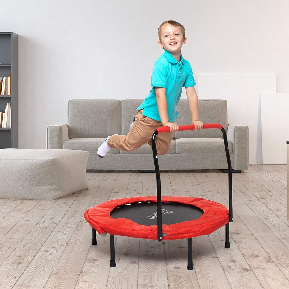 ترامبولين محمول للأطفال مقاس 36 بوصة مع مقبض لتحقيق الاستقرار ووسادة السلامة - درابزين قابل للطي لسهولة التخزين - ترامبولين للياقة البدنية للأطفال والكبار - تمرين هادئ داخلي وخارجي