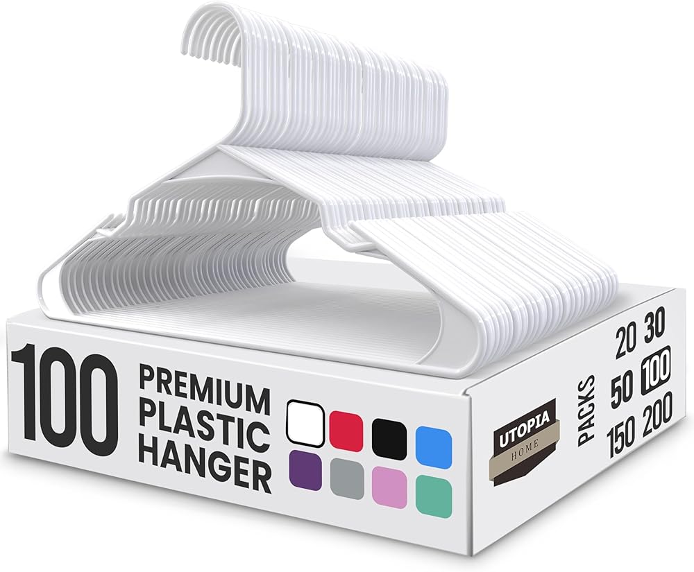 عبوة شماعات بلاستيكية - عبوة من الشماعات البلاستيكية لمنظمات الخزانة والتخزين، مقاس كل شماعة 16.14 × 0.23 × 9.25 بوصة.