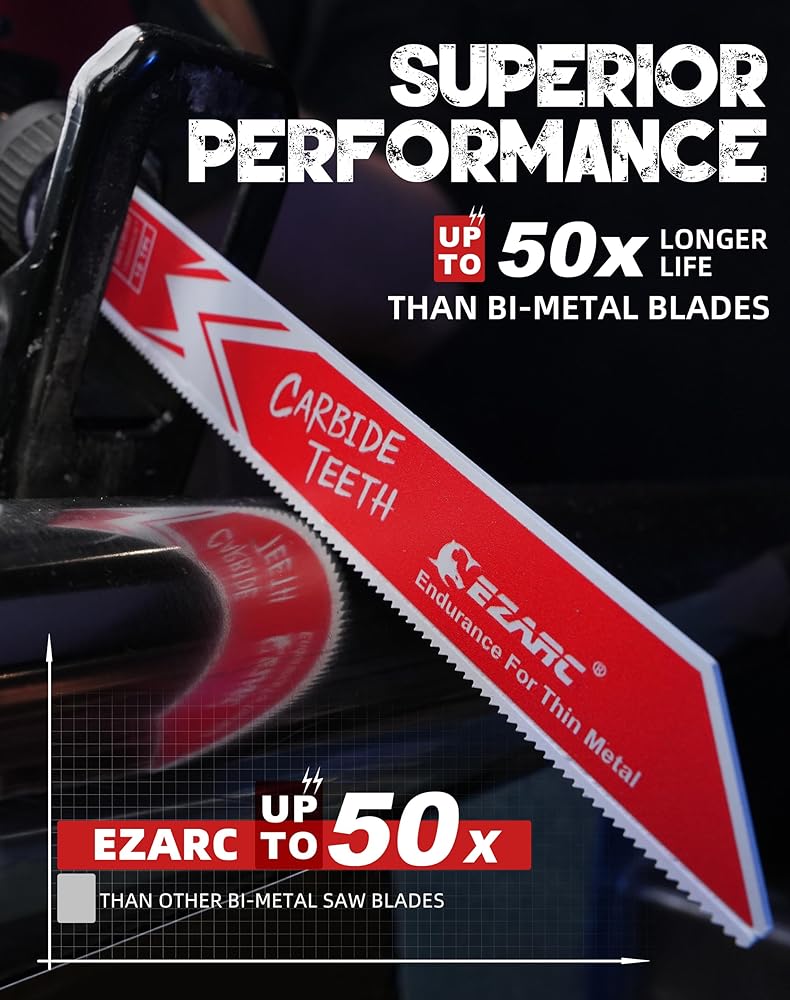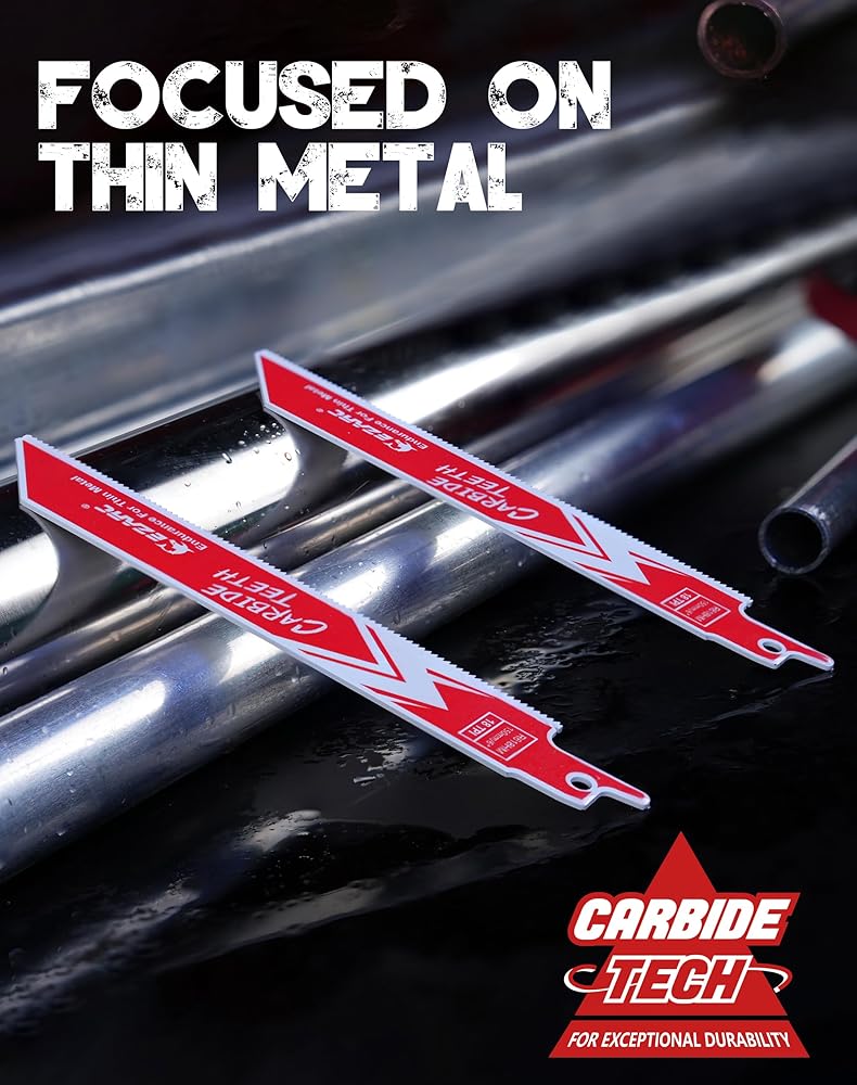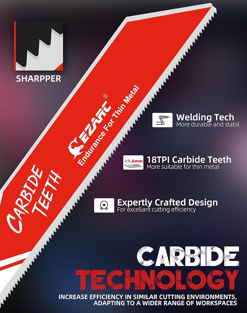 EZARC كربيد الترددية المنشار بليد R618HM التحمل للمعادن الرقيقة، صفائح الفولاذ المقاوم للصدأ 6 بوصة 18TPI، 2 حزمة
