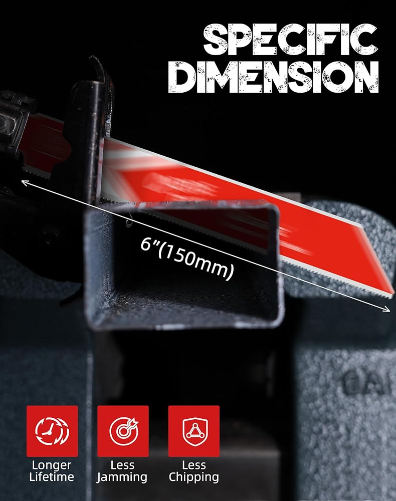 • 【شانك عالمي】شفرات منشار قطع معدنية رفيعة 6 بوصات (150 مم) 18TPI مع ساق عالمية 1/2 بوصة تناسب جميع مناشير المنشار الرئيسية مثل Bosch، Milwaukee، Black & Decker، Hitachi، Makita، Metabo، Dewalt، Porter Cable، Skil، Rockwell إلخ. .