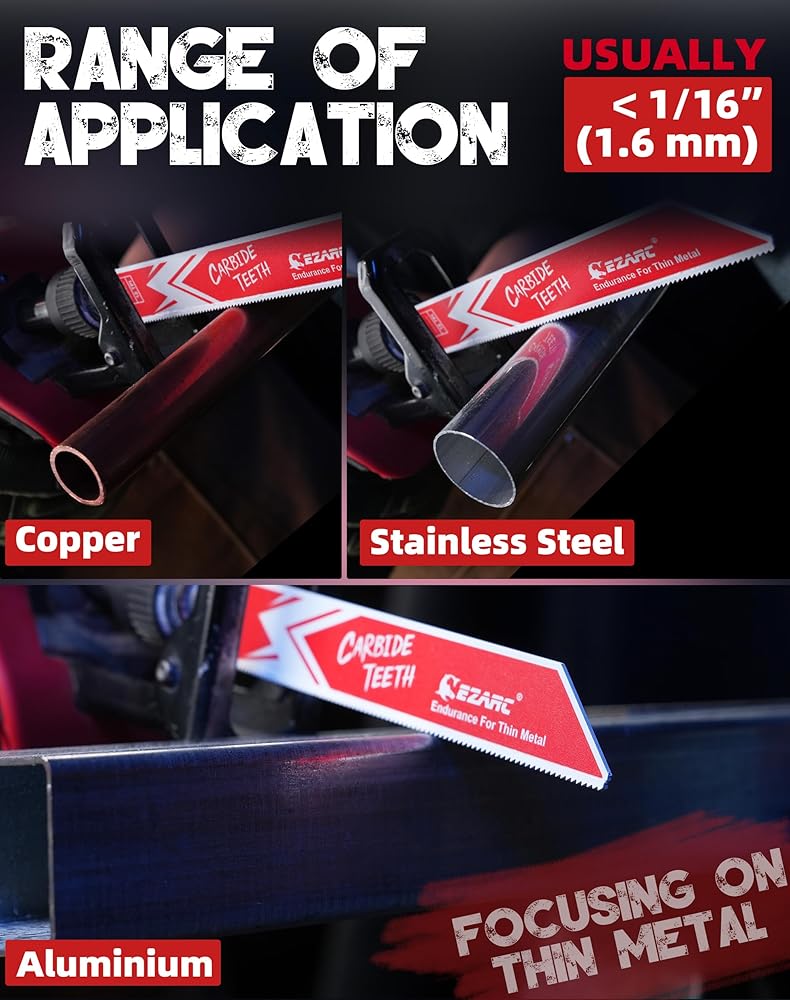 • 【تقنية الكربيد】تتميز شفرات منشار الكربيد من EZARC بعملية لحام دقيقة تضمن توزيعًا متساويًا لجزيئات الكربيد عالية الجودة، مما يوفر مقاومة فائقة للتآكل وطول العمر. تم تصميمه خصيصًا لتوفير عمر قطع أطول بمقدار 50 مرة في المعادن الرقيقة التي يقل سمكها عن 1/8 بوصة.