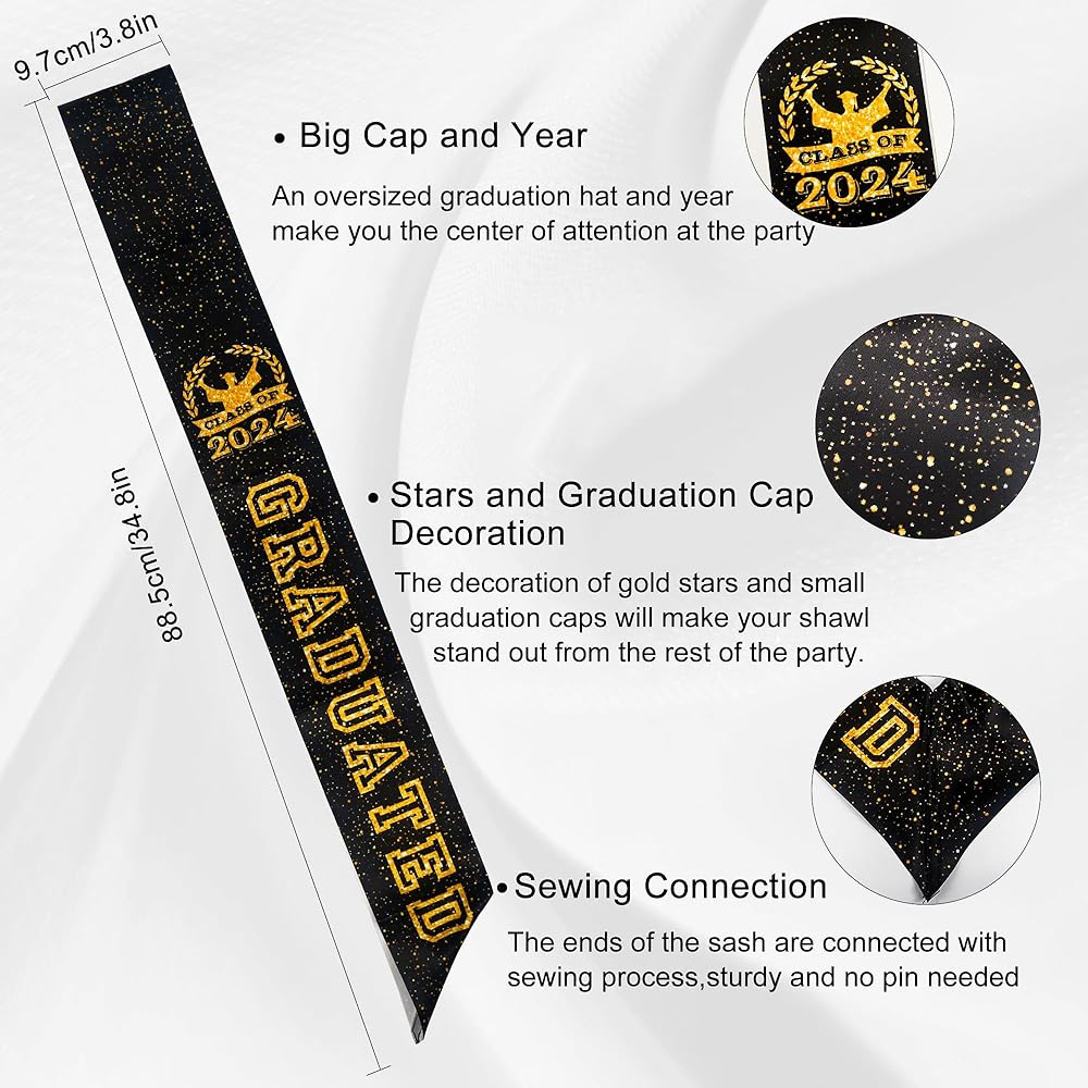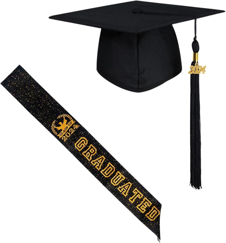 2024 Graduation Cap with Class of 2024 Sash for Adults