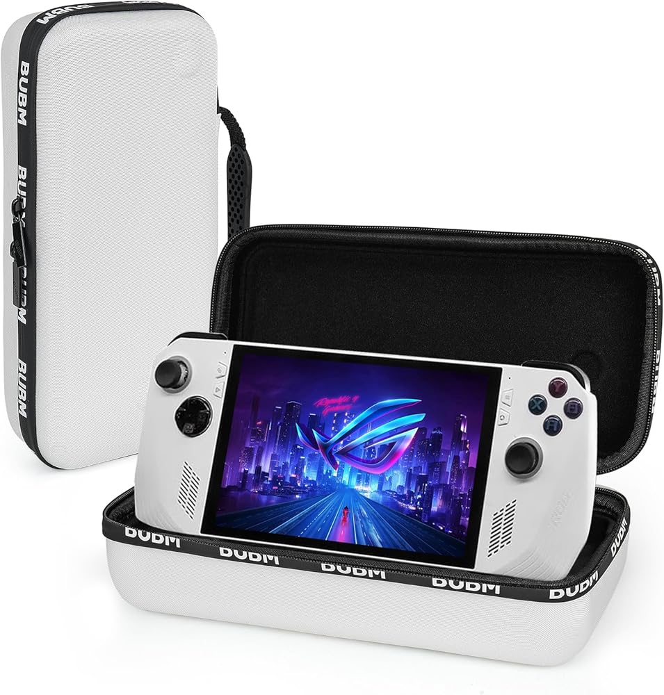 Carrying Case Compitable for Asus Rog Ally Gaming Handheld with Screen Protector and Silicone Thumb Grip Caps,Hard Shell Travel Protective Storage Bag Fits for Rog Alloy and Accessories(White)