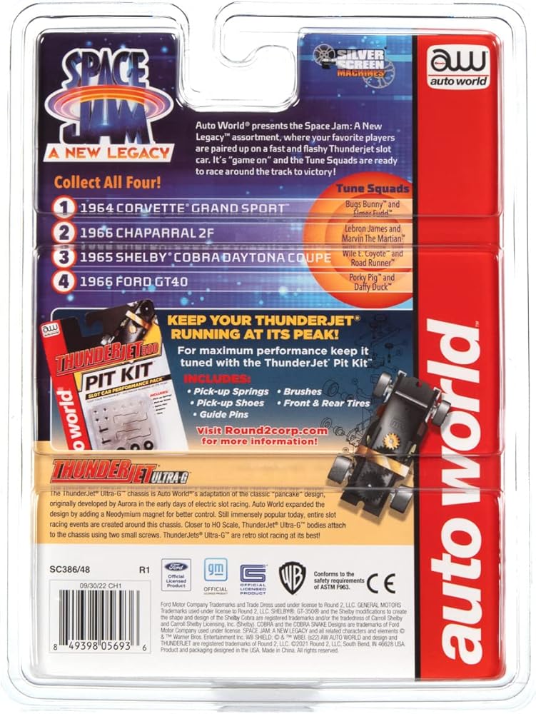 Looney Tunes Space Jam - Thunderjet - 2022 Release 1 The ThunderJet Ultra-G chassis is Auto World's adaptation of the classic "pancake" design, originally developed by Aurora in the early days of electric slot racing. Auto World expanded the design by adding a Neodymium magnet for better control. Still immensely popular today, entire slot racing events are created around this chassis. ThunderJets Ultra-G are retro slot racing at its best!