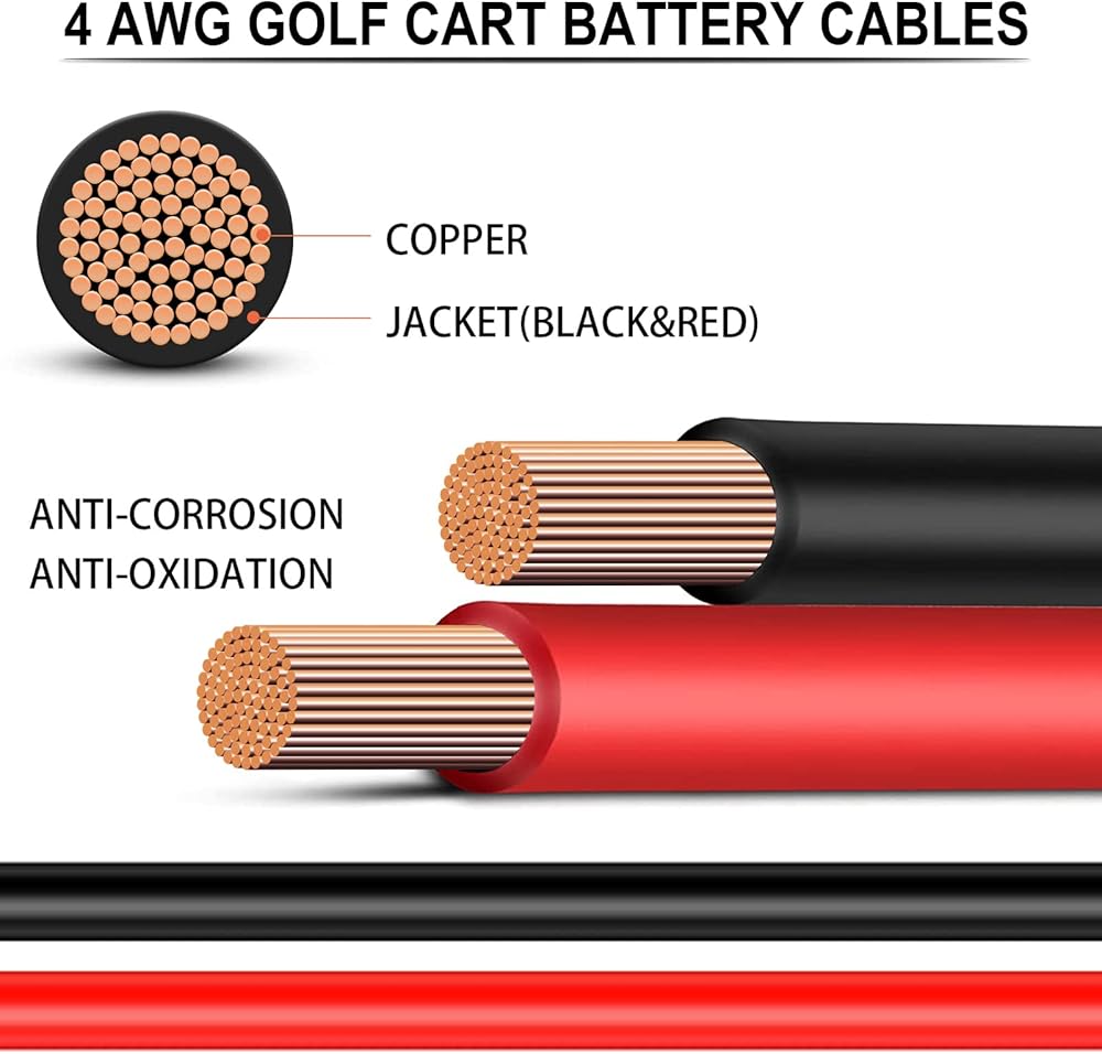 The new 4 gauge golf cart battery cable set can save your 1994+ EZGO TXT golf cart's electricity and prevent leakage, reduce battery aging