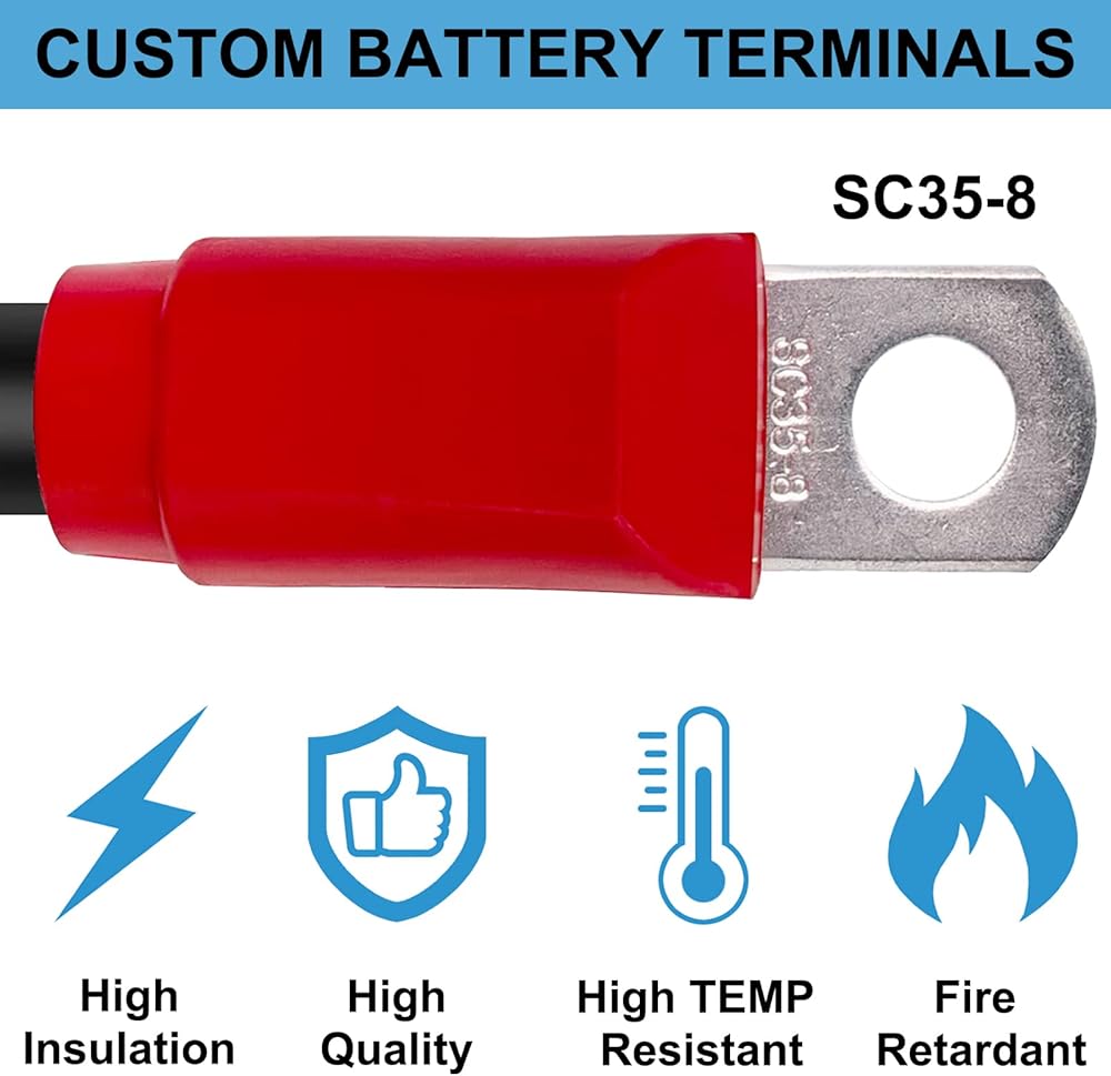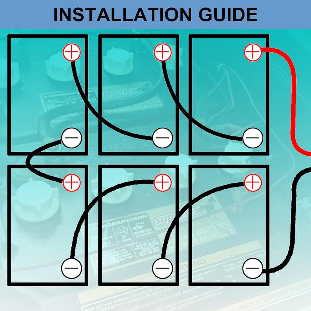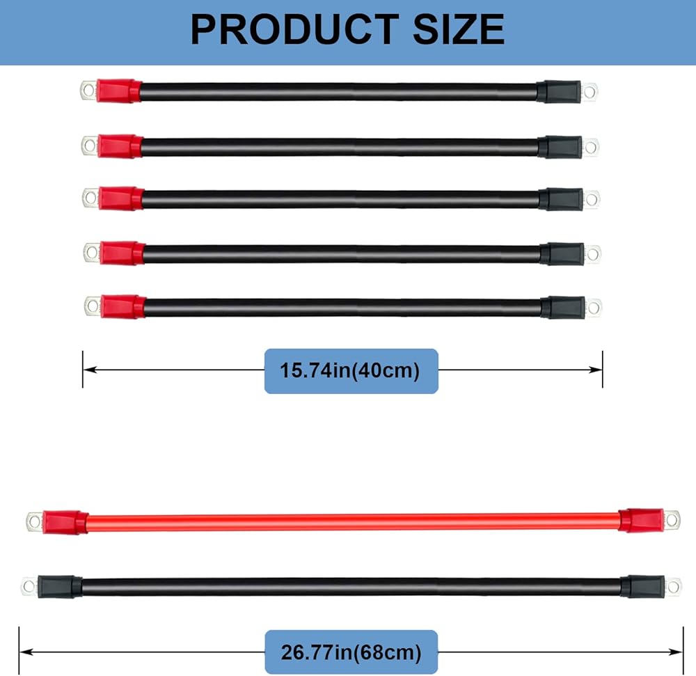 Red and black to identify positive and negative,Red end---positive +, Black end---negative -,please separate the the positive&negative poles when you install the battery cable to prevent from short circuit . Package including:1PCS 25" red1PCS 25" black5PCS 13.97" black