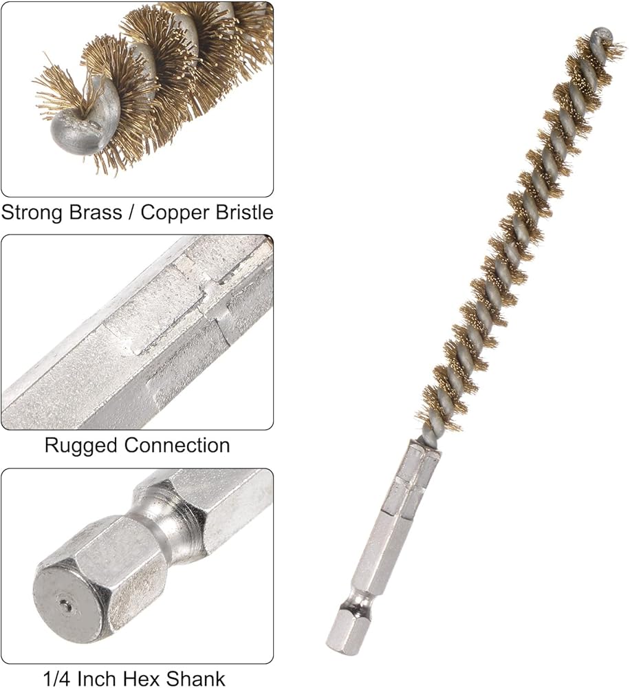 الاستخدام - يمكن تركيب الفرشاة ذات الساق السداسية مقاس 1/4 بوصة على مثقاب أو مطحنة قالب، أو على مقبض السائق المقابل لتنظيف أكثر كفاءة.