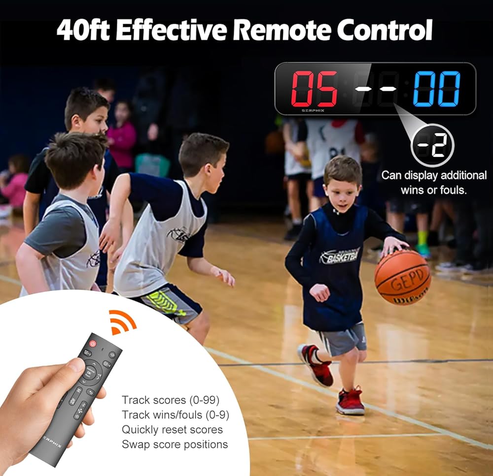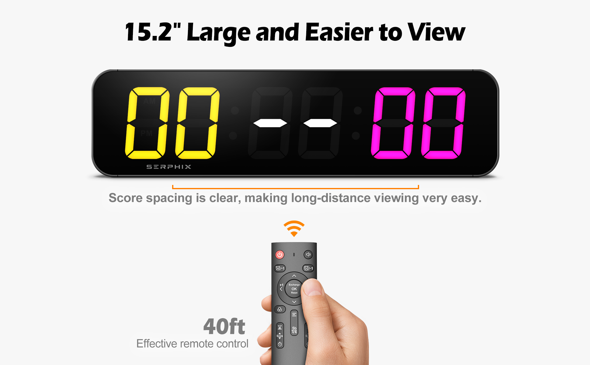 【سهلة الاستخدام】-- سجل النتائج لكلا الفريقين (0-99)، أو الانتصارات، أو الأخطاء (0-9). يمكن التحكم فيه بسهولة من مسافة طويلة (40 قدمًا) باستخدام جهاز التحكم عن بعد. يمكن إعادة ضبط التسجيل بسرعة. يدعم مصدر الطاقة المحمول، لذلك يمكنك أخذه إلى أي مكان واستخدامه.