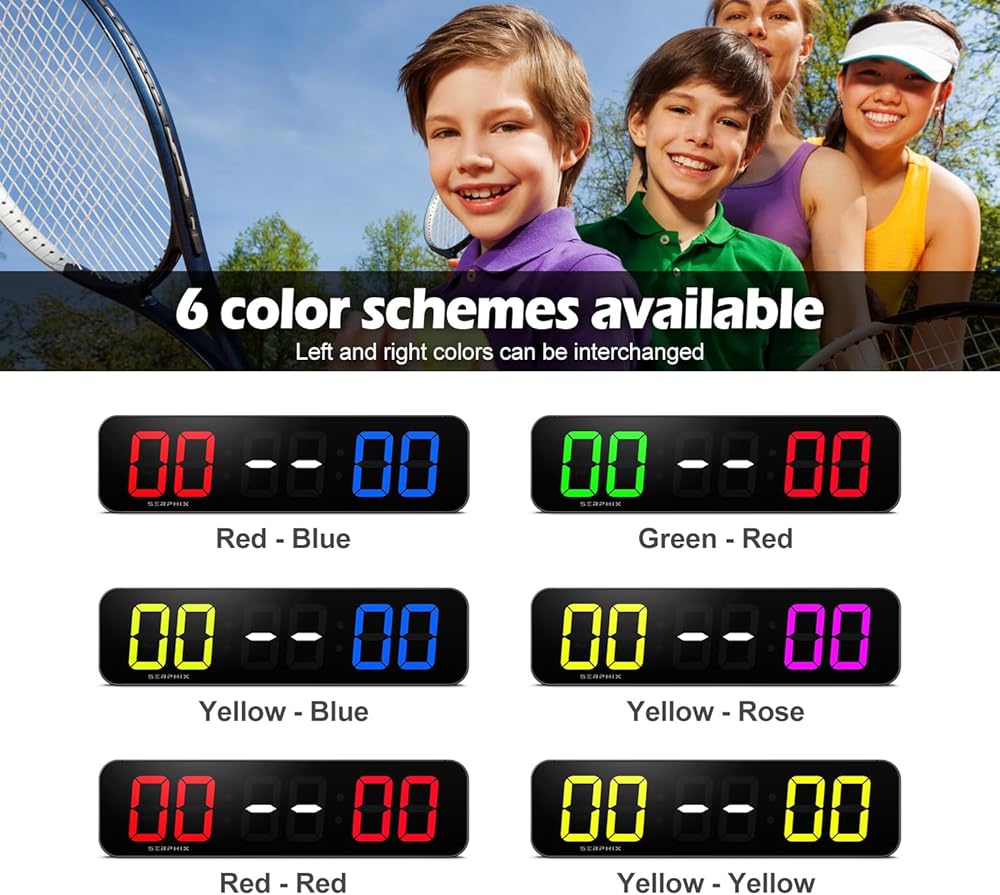 【ألوان لوحة النتائج قابلة للتغيير】-- يحتوي وضع لوحة النتائج على 6 مجموعات من ألوان LED للاختيار من بينها، بدلاً من لون ثابت واحد، حتى تتمكن من اختيار نظام الألوان المرغوب فيه في أي وقت وفقًا لاحتياجات موقع اللعبة، مما يجعل النتيجة عرض أكثر بديهية وشخصية.