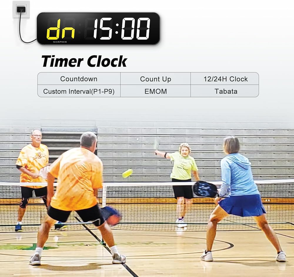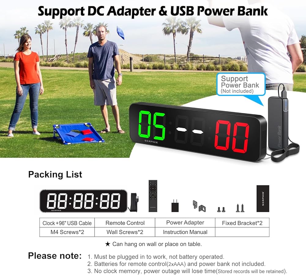 【وظائف المؤقت والساعة】-- تتضمن ميزات المؤقت العد التنازلي، والعد التنازلي، والتاباتا، وEMOM، وAMRAP، والفواصل الزمنية المخصصة. وظيفة الساعة الرقمية مريحة وعملية للاستخدام خارج الألعاب (تنسيق 12/24 ساعة). نظرًا لألوان LED القابلة للتغيير، يمكنها توفير شاشات ملونة واضحة وبديهية في أي وضع.