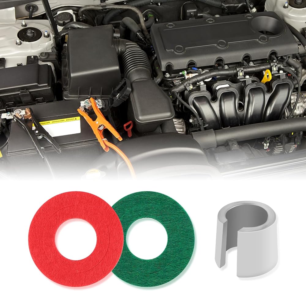 ⭕ Easy to Install: You just need to remove the old gasket on the battery terminals top post and replace our car lead battery terminal post shims and fiber gaskets for wiring. The installation is easy to understand and does not require any specialized knowledge or skills on your part.