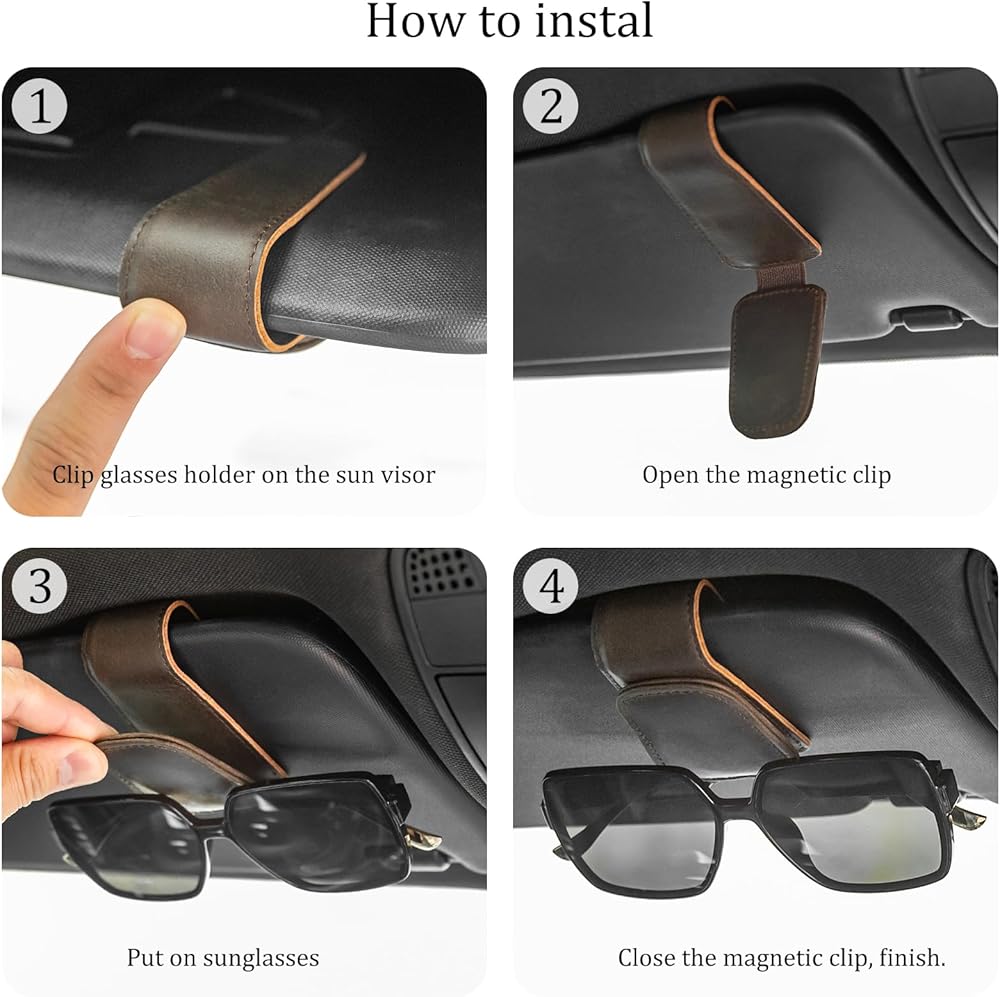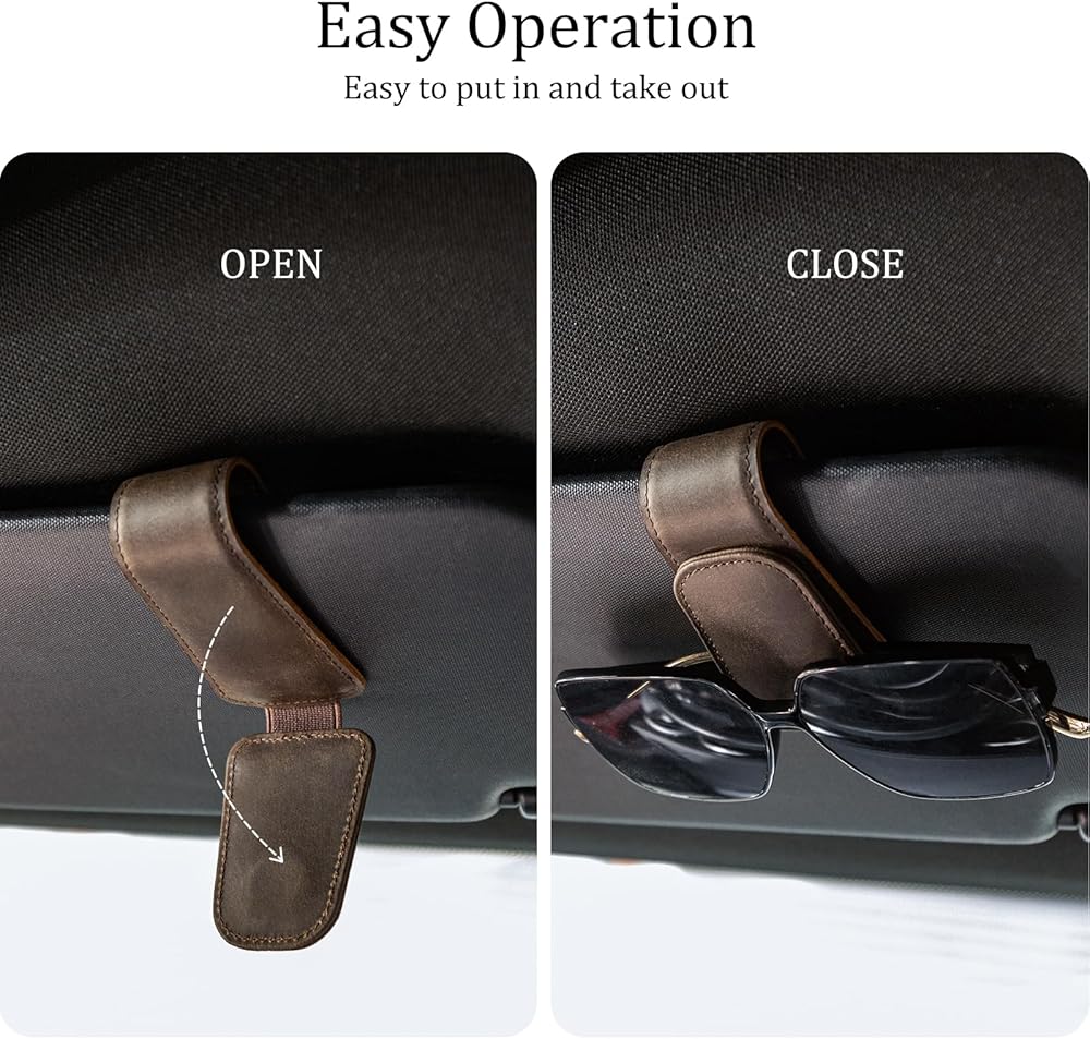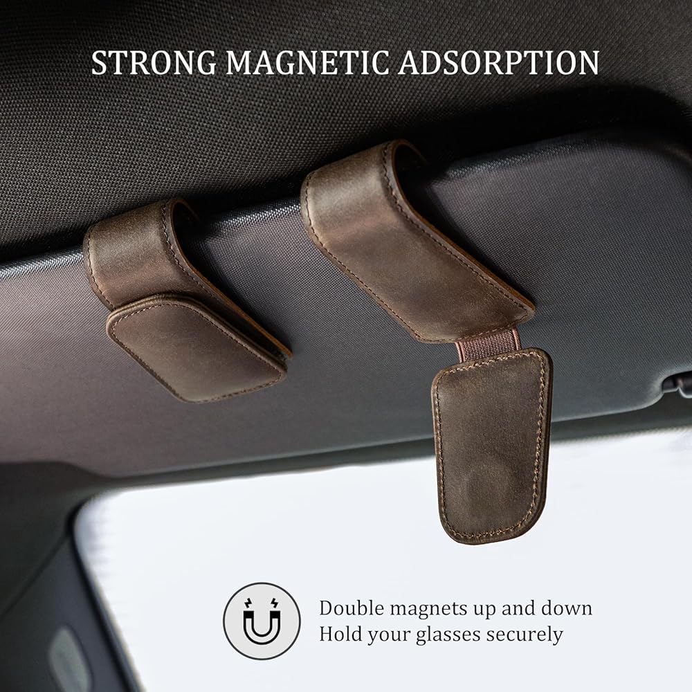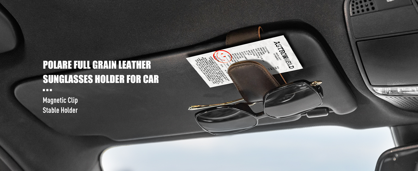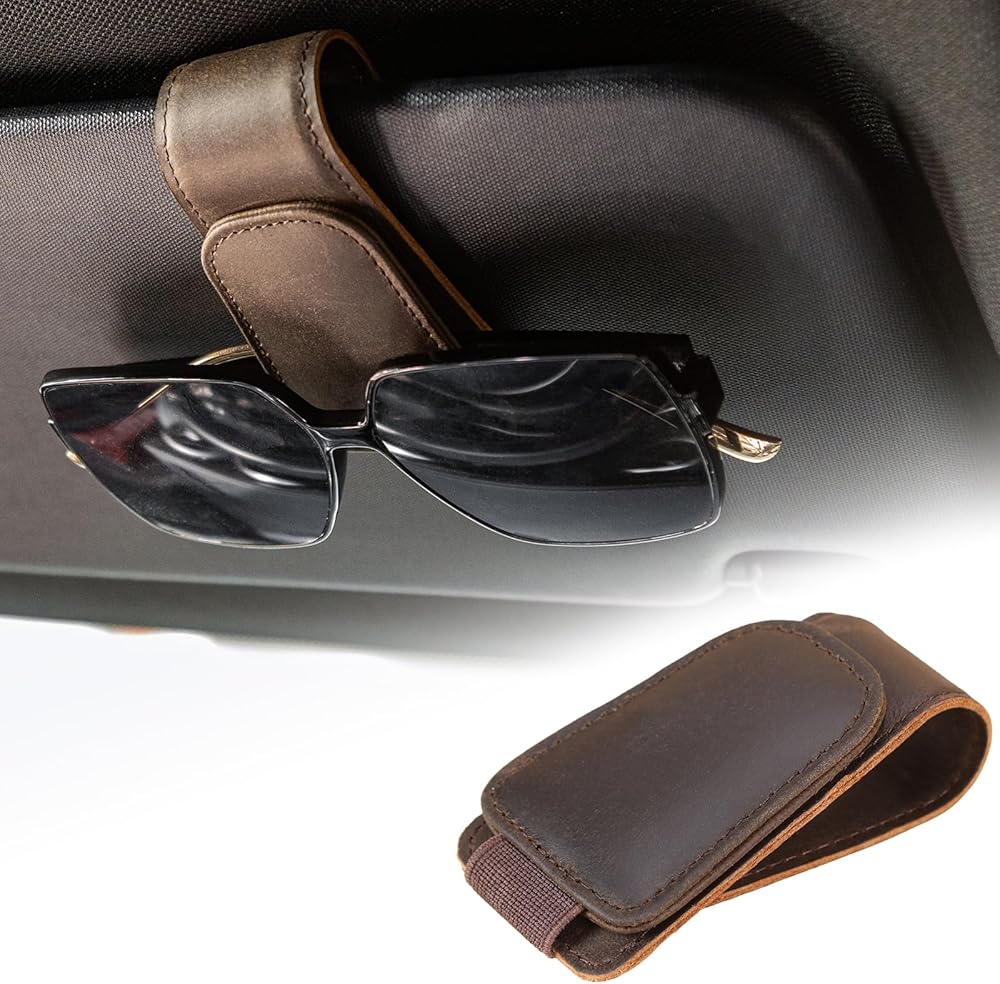 Polare حامل نظارات شمسية من الجلد المحبب بالكامل لنظارات السيارة ونظارات شمسية ومشبك مغناطيسي من الجلد وحامل نظارات عالمية للشاحنة والإكسسوارات الداخلية للسيارة، عبوة واحدة