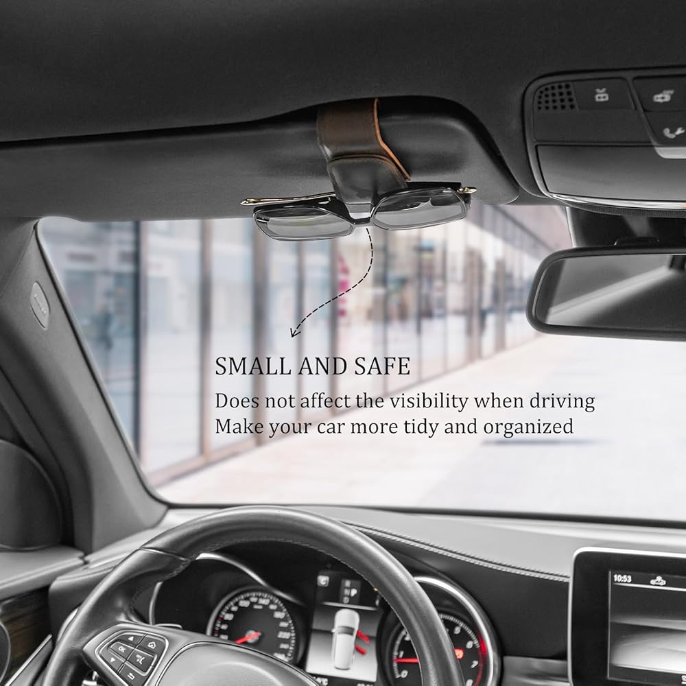 【مستقر وآمن】- يمكن ربط حامل النظارات الشمسية للسيارة بشكل آمن بواقي الشمس دون إعاقة رؤية السائق. يتناسب بشكل مريح مع قناع السيارة دون شغل مساحة أو إعاقة رؤيتك للطريق، مما يحسن سلامة وراحة القيادة.