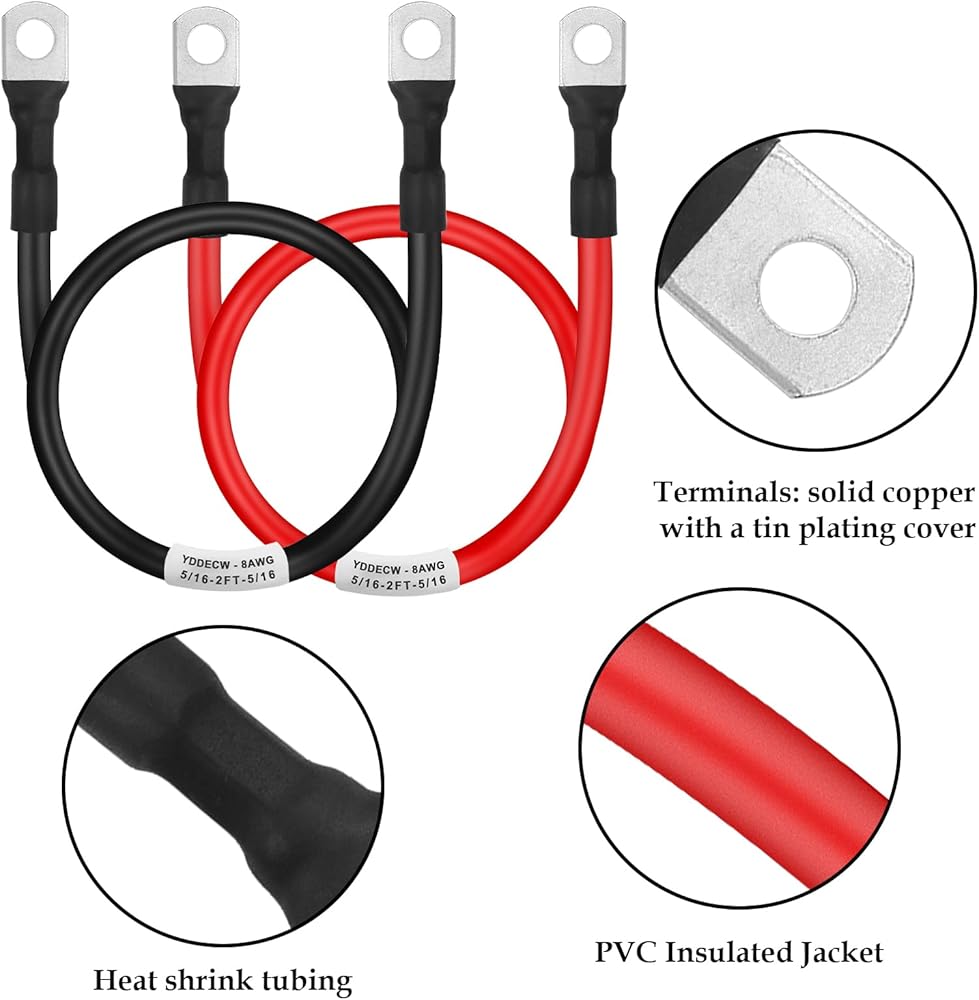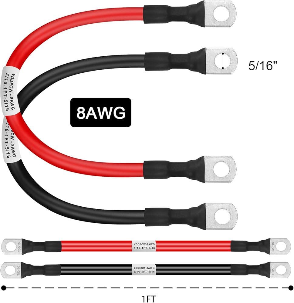 الكابل: 8 قياس (1 إيجابي و1 سلبي)؛ العروات الطرفية: 5/16 بوصة؛ الطول: 1 قدم