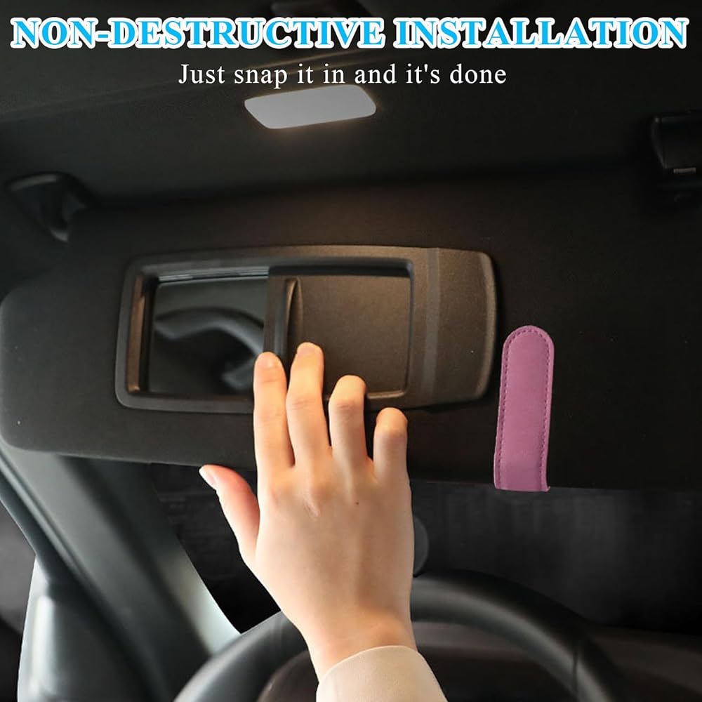 • 【Simple Mounting】: This product adopts non-destructive installation and does not require other tools. All you need to do is to hold the back clip fastener slightly open and clip it to the sun visor. The clip is also leather-wrapped, so it can hold it securely without harming your car visor.