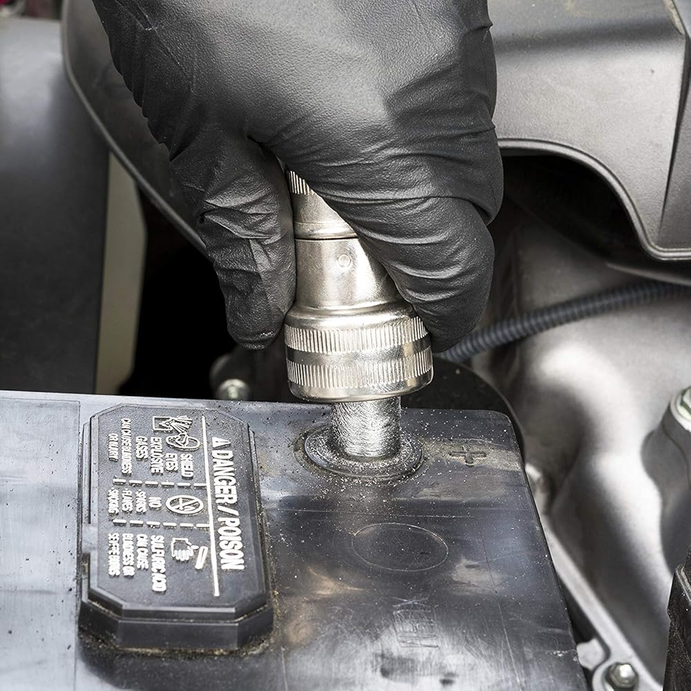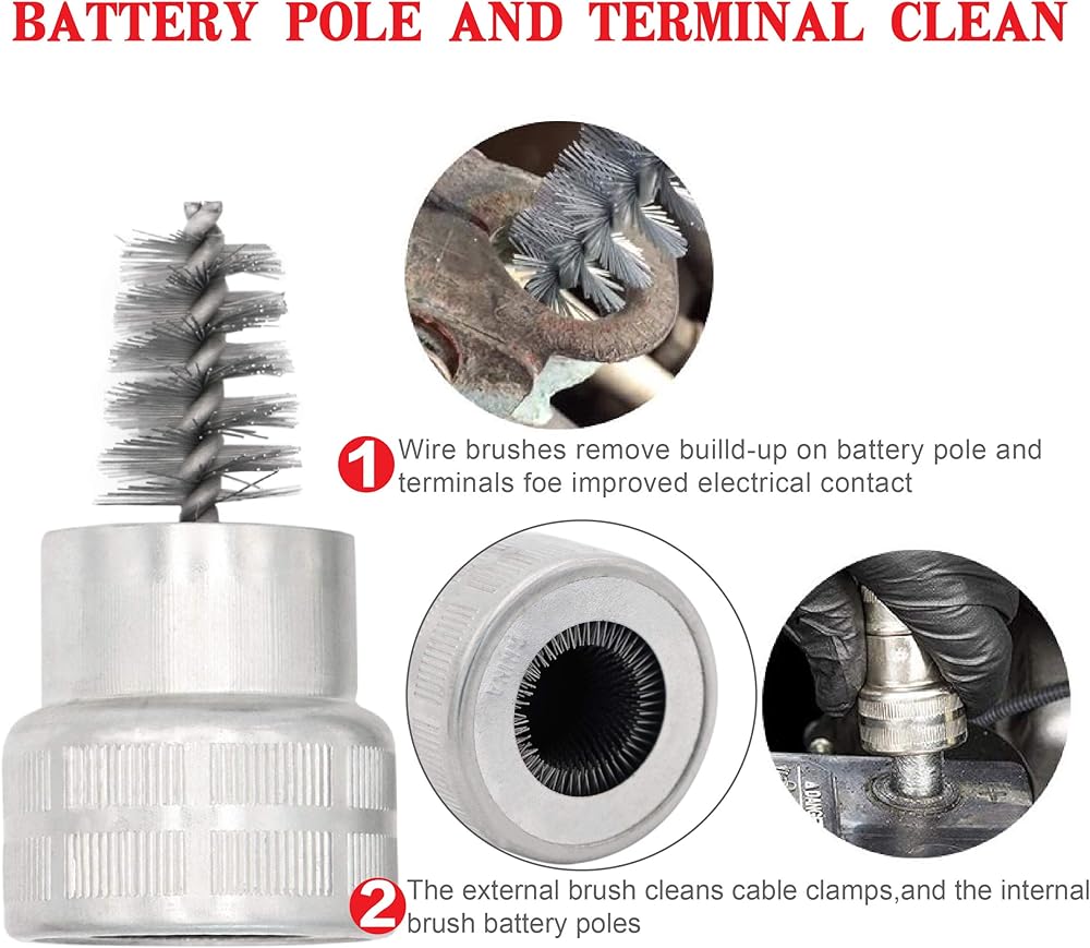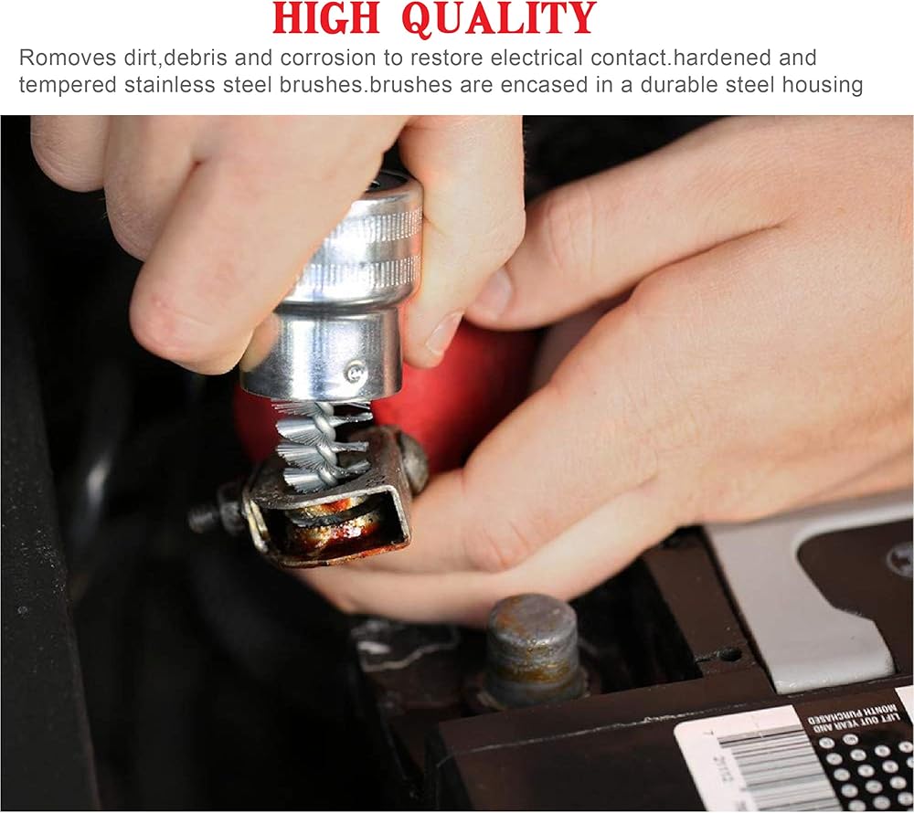 Battery Terminal Cleaning Brush-Stainless steel metal brush cleans corrosion build up on cables and batteries,Works on positive and negative battery posts, extenders, adapters, connectors, shims, and cable clamps.