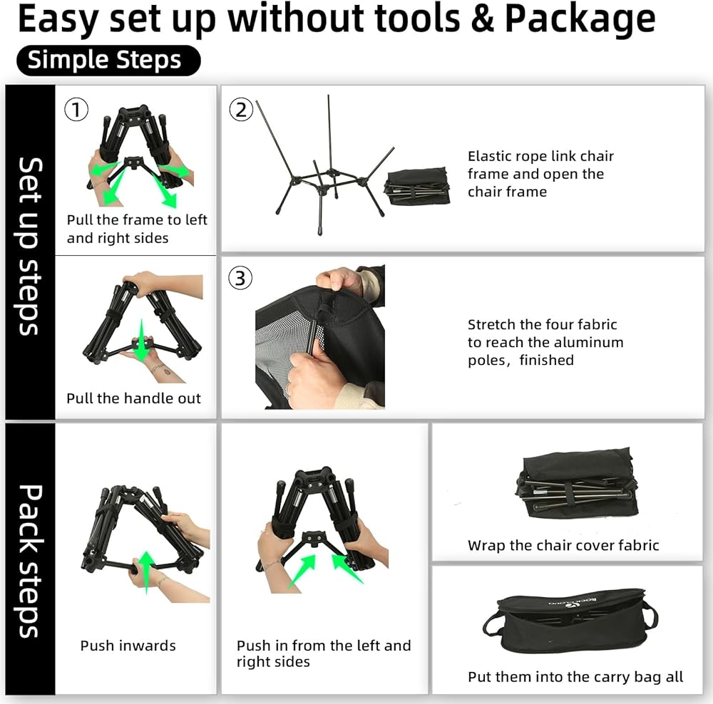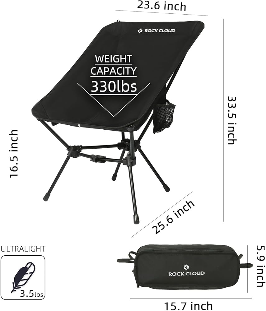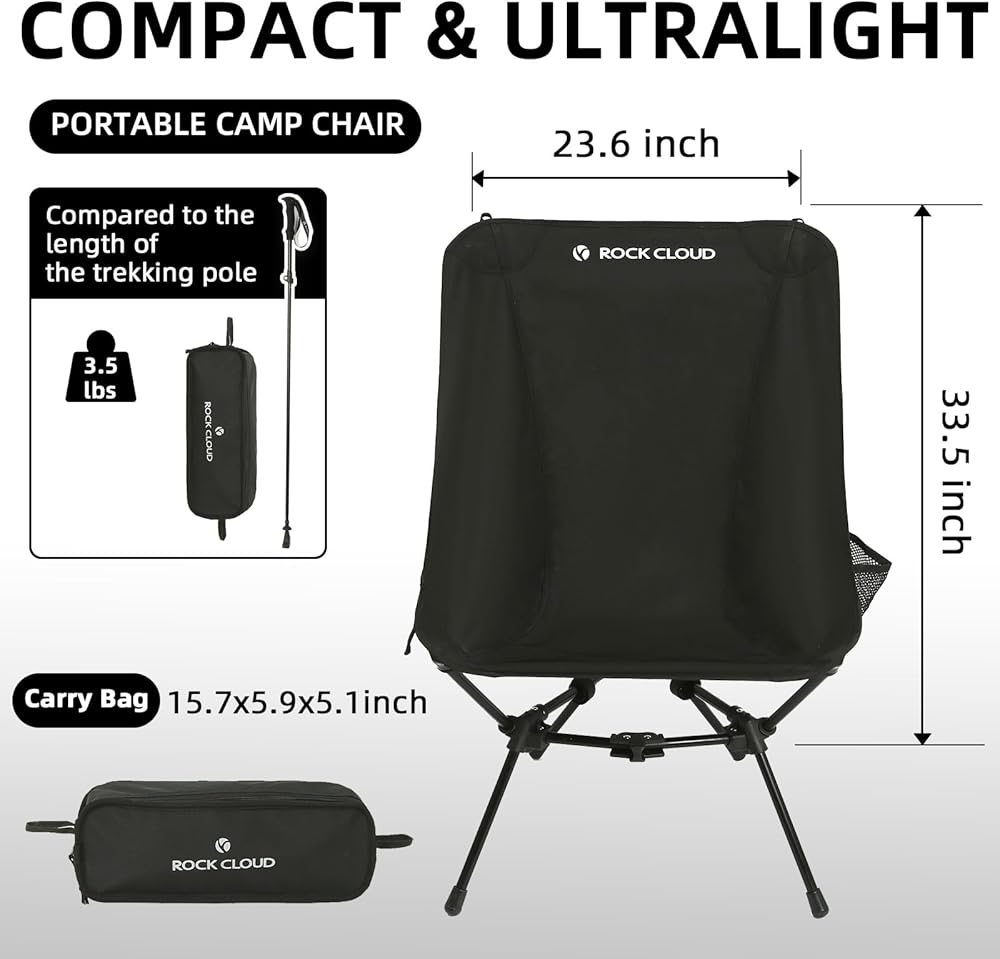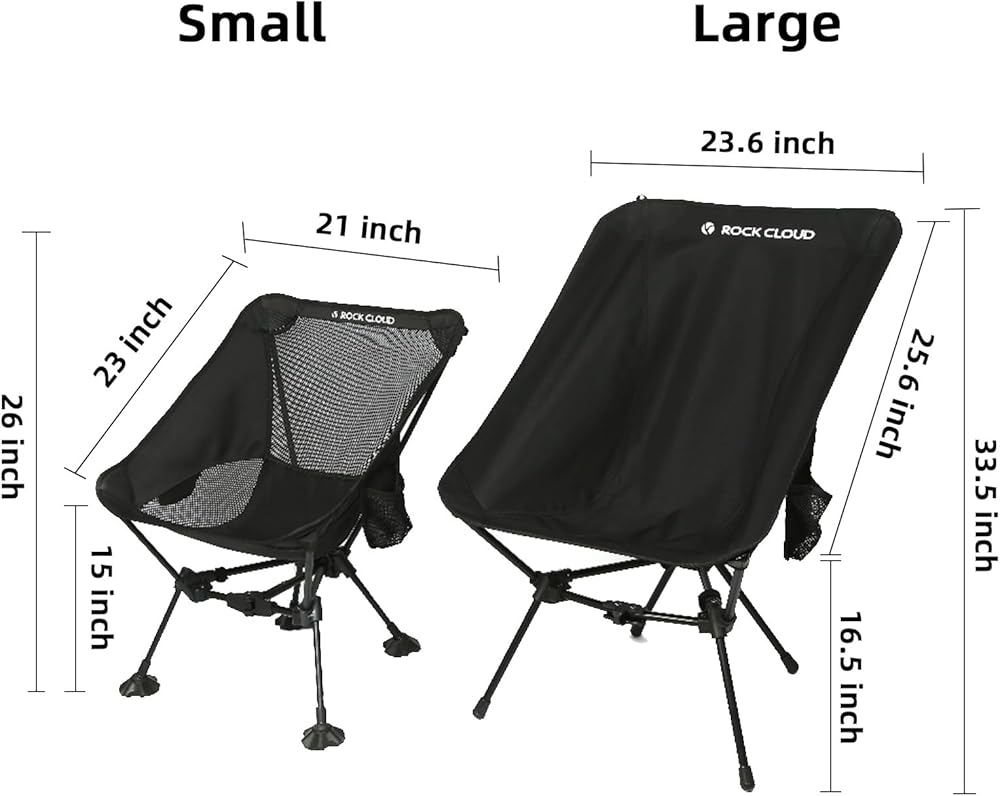 خفيف للغاية وقابل للحمل: خفيف كجناح، كرسي التخييم المدمج الجديد الكبير الخاص بنا يبلغ وزنه 3.5 كجم فقط، مقاس L، حجم العبوة 15.7 × 5.9 × 5.1 بوصة، مقاس قابل للطي 23.6 × 25.6 × 33.5 بوصة، ارتفاع المقعد 16.5 بوصة. يمكنك أخذها إلى أي مكان مع حقيبة حمل، مناسبة خاصة للأنشطة الخارجية مثل التخييم والتنزه سيرًا على الأقدام وحقيبة الظهر والنزهة وصيد الأسماك والشاطئ والمناسبات الرياضية وكذلك الاستخدام الداخلي.