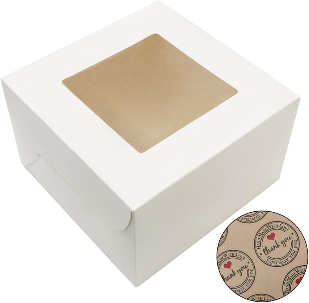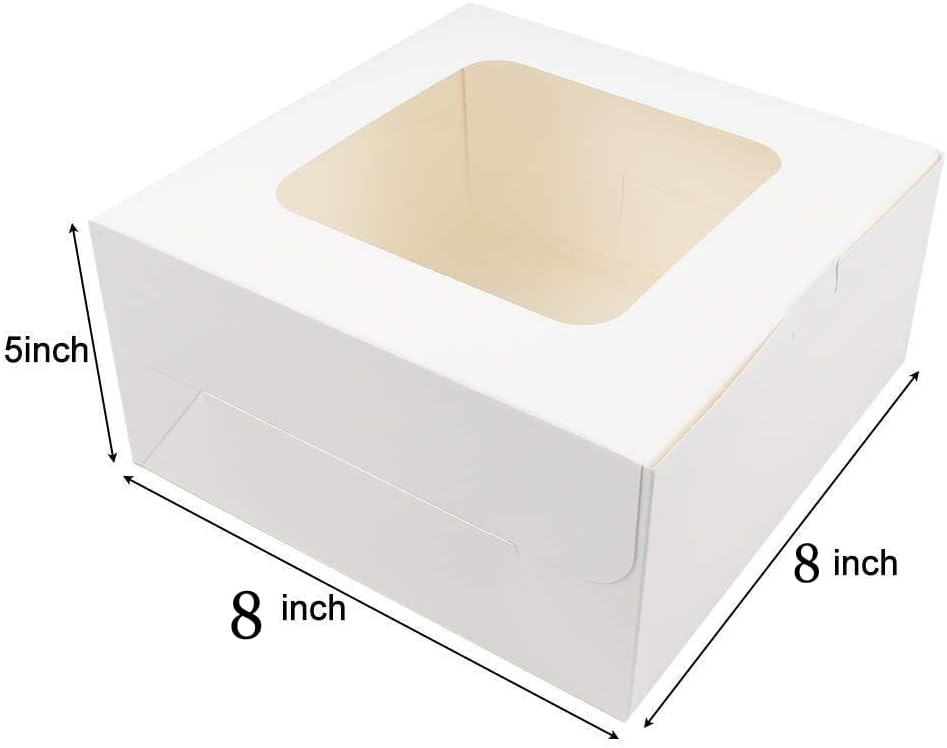 25 قطعة من صناديق الكيك، 8 × 8 × 5 بوصات صناديق خبز مربعة بيضاء مع نافذة كاجا باستيل للكعك والمعجنات والشوكولاتة والبسكويت والفطيرة وحفلات أعياد الميلاد وحفلات الزفاف وعيد الحب (أبيض)