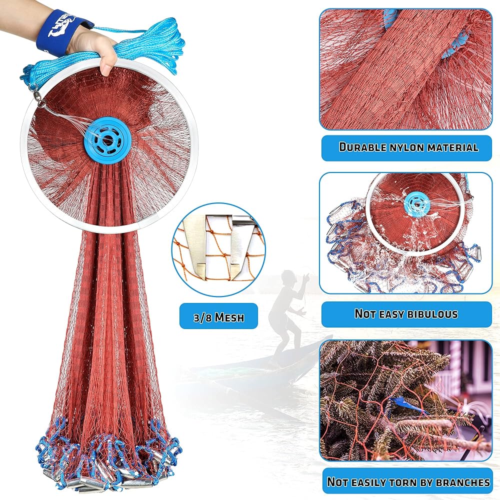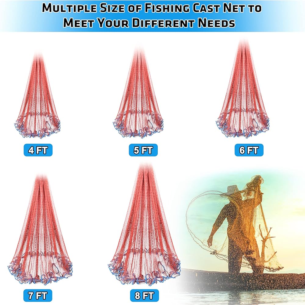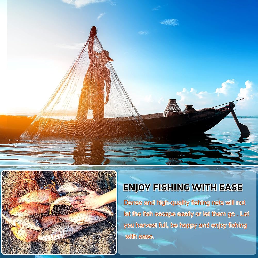 【Ideal Gift】- Fishing cast net is suitable for freshwater and saltwater, like shallow seas, rivers, lakes, ponds and many occasions, making capturing live bait easy and fun. The cast net comes with the portable handbag, It is convenient for you to carry when you go out for fishing. Special gift for Father's Day, Christmas, Thanksgiving Day, Valentine's Day ect.