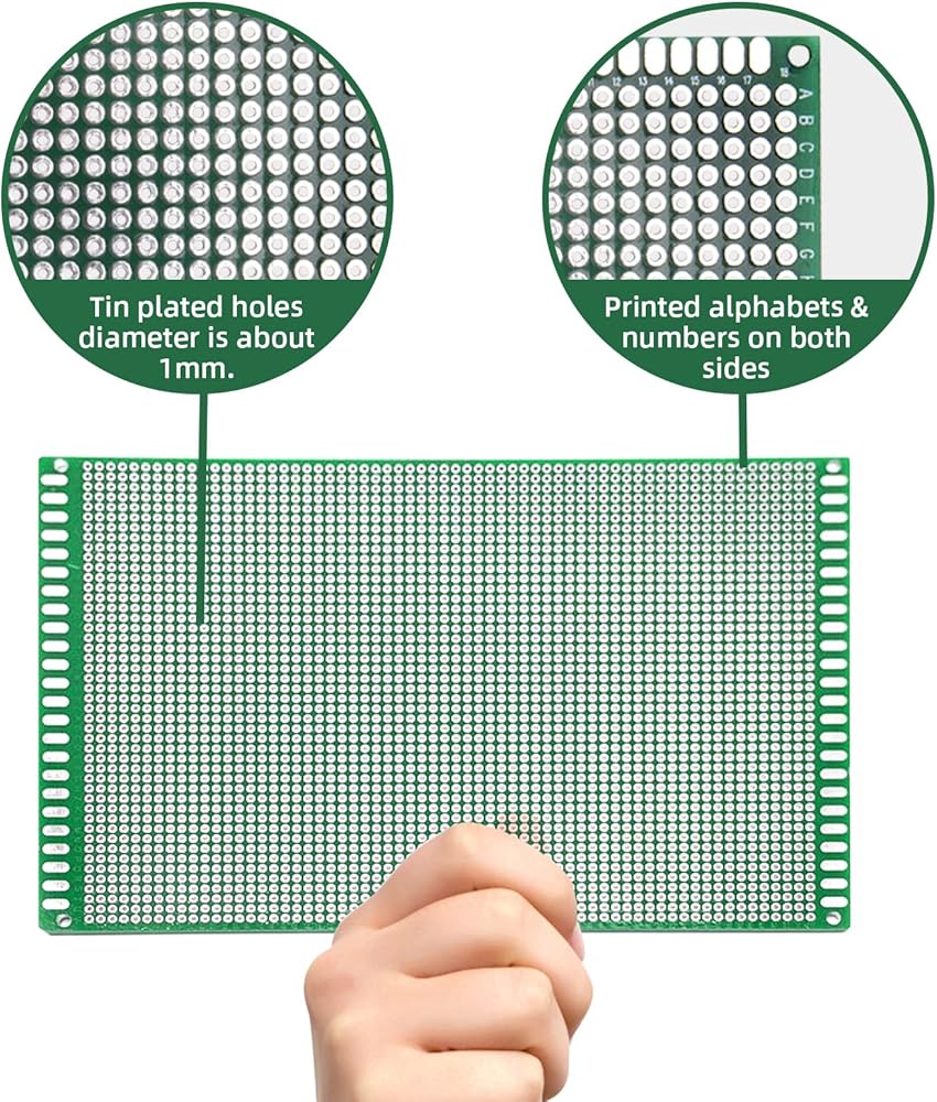 ♚ لوحات بروتو مصنوعة من مادة PCB المصنوعة من الألياف الزجاجية FR-4 المتينة مما يجعلها لوحة دائرة نموذجية متينة وقوية للغاية بسمك 1.6 مم تقريبًا.